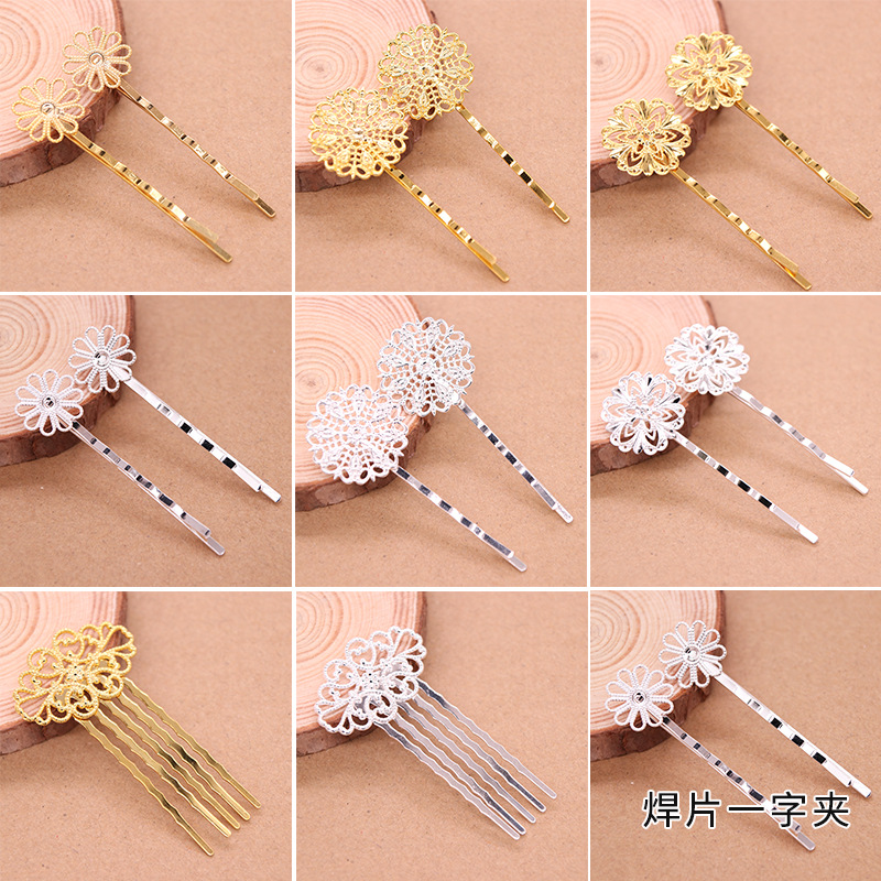 Diy手作り古風手作り髪飾り材一字エッジクリップ髪櫛真鍮ヘアピン歩行ヘアクリップ溶接フィルム