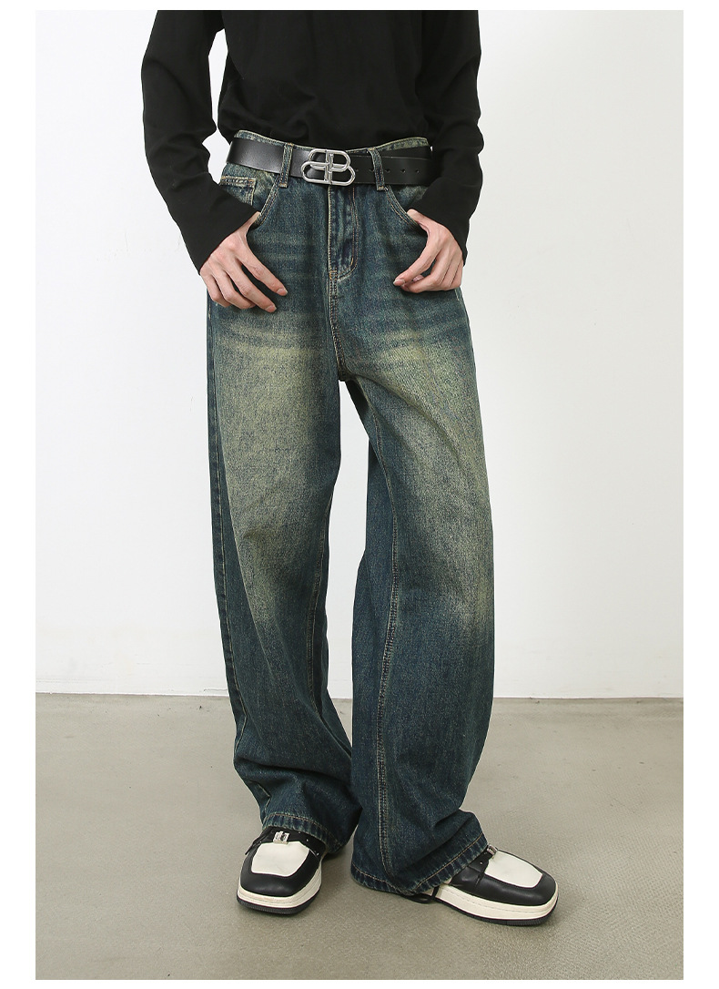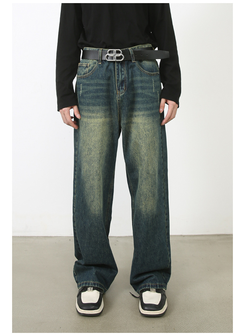 Nirbenデニム | 新商品アメリカンレトロジーンズ男水洗いゆったりとしたカジュアルなストレートズボン