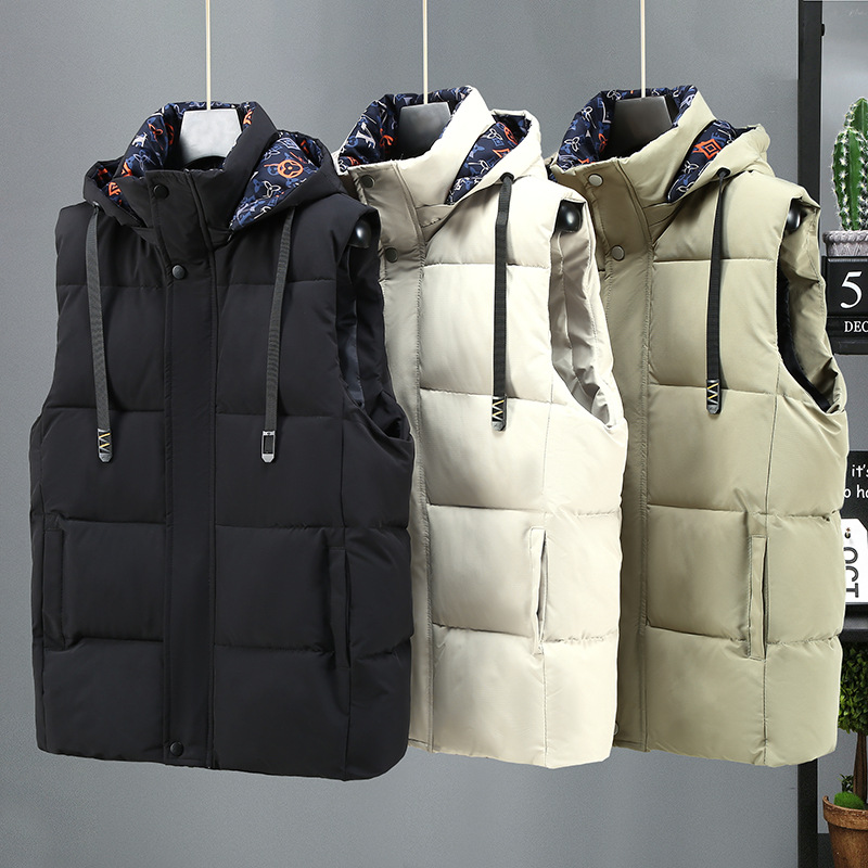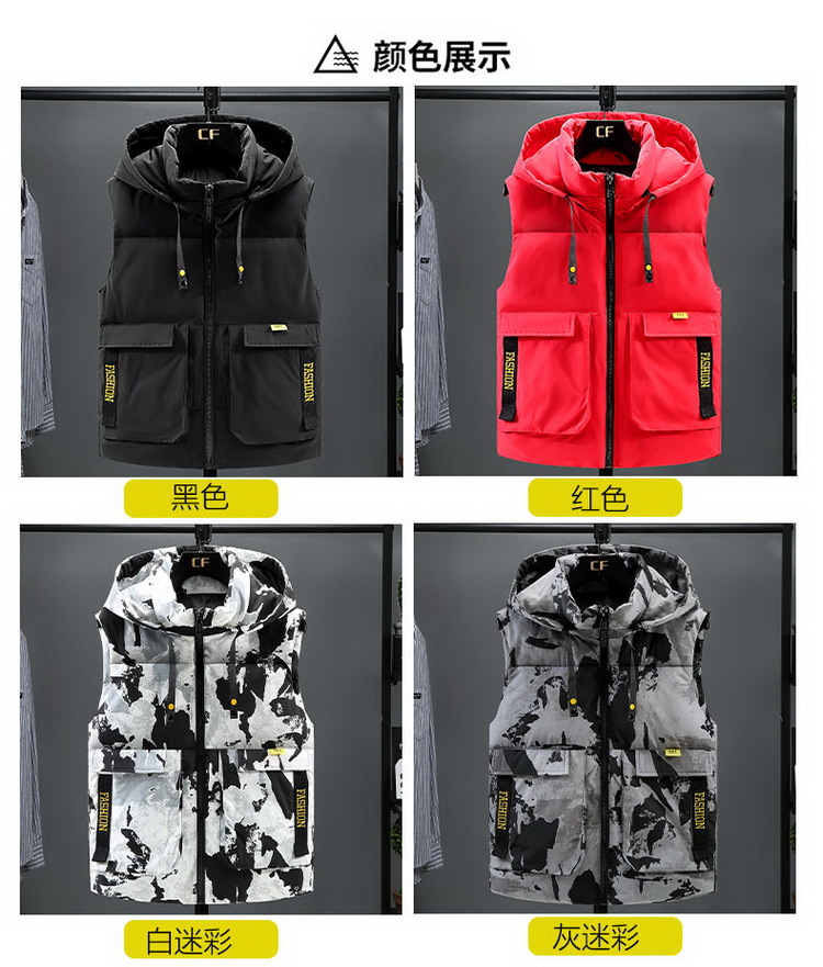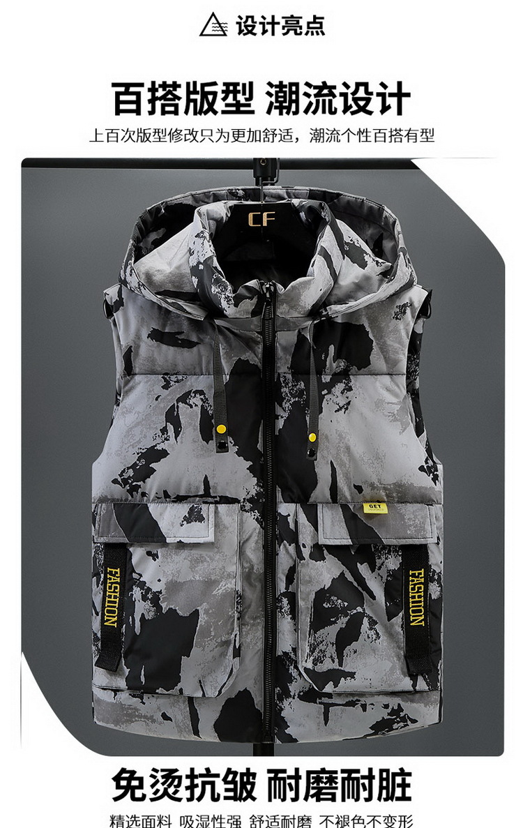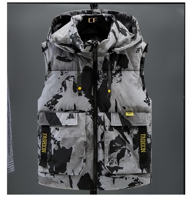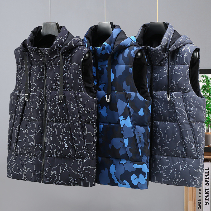 越境貿易の人気商品、アマゾンで売れ筋の冬用綿ベスト、メンズ新作秋冬綿ベスト、プリント入り