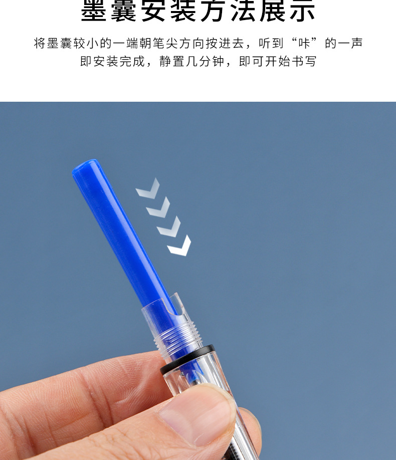 純粋な黒色の青い黒の万年筆は墨の袋の小学生を拭くことができます。