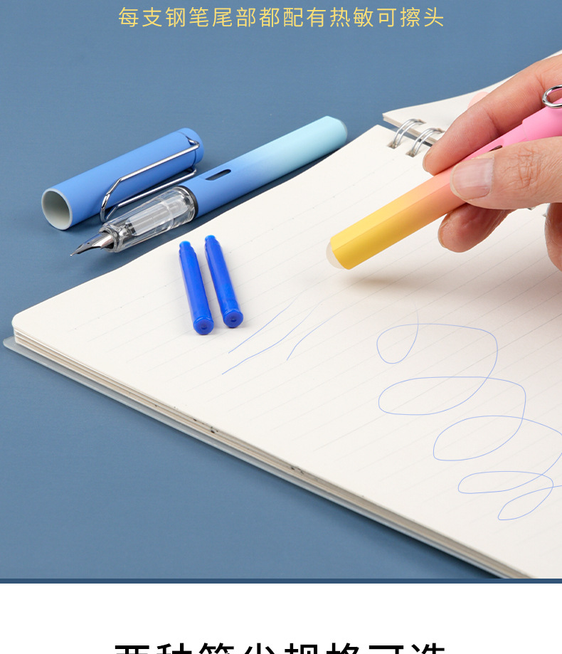 小学生向け消せるペン、消せるインクバッグ、交換可能な書き練習用消しゴム、熱消せる青色ペン