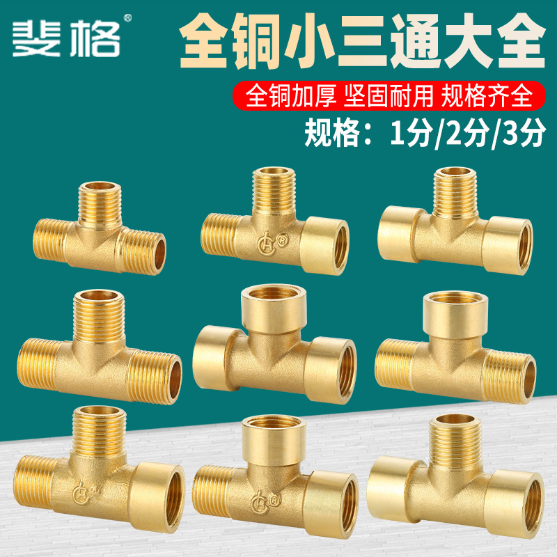 黄铜1分2分3分三通1/8接头三内丝三外牙内外丝机械液压气动铜配件