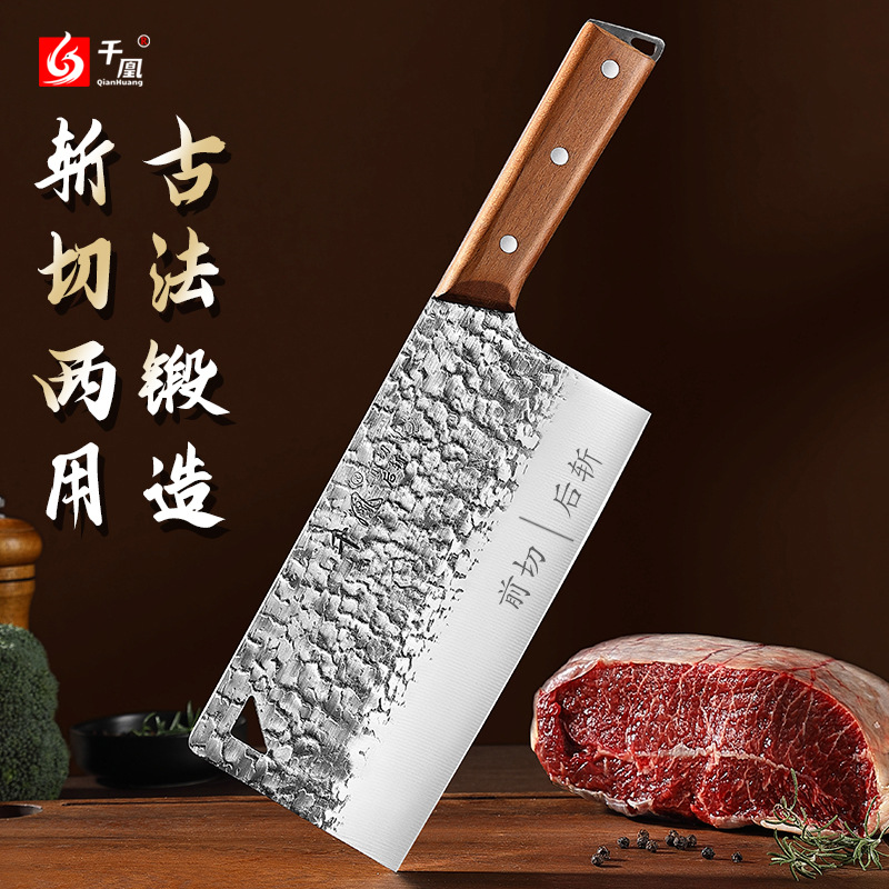 千凰锤纹经典斩切刀两用厨师家用菜刀锋利切片刀具前切后斩锻打刀