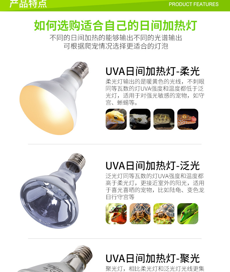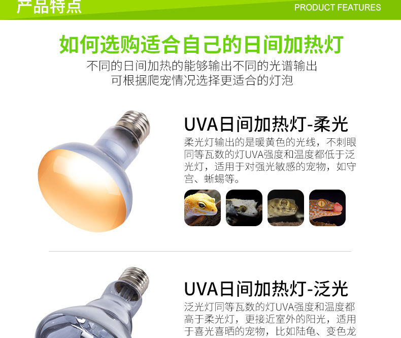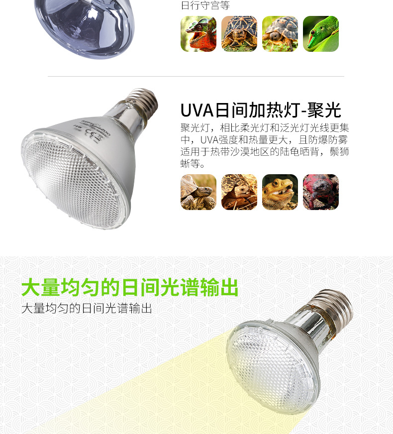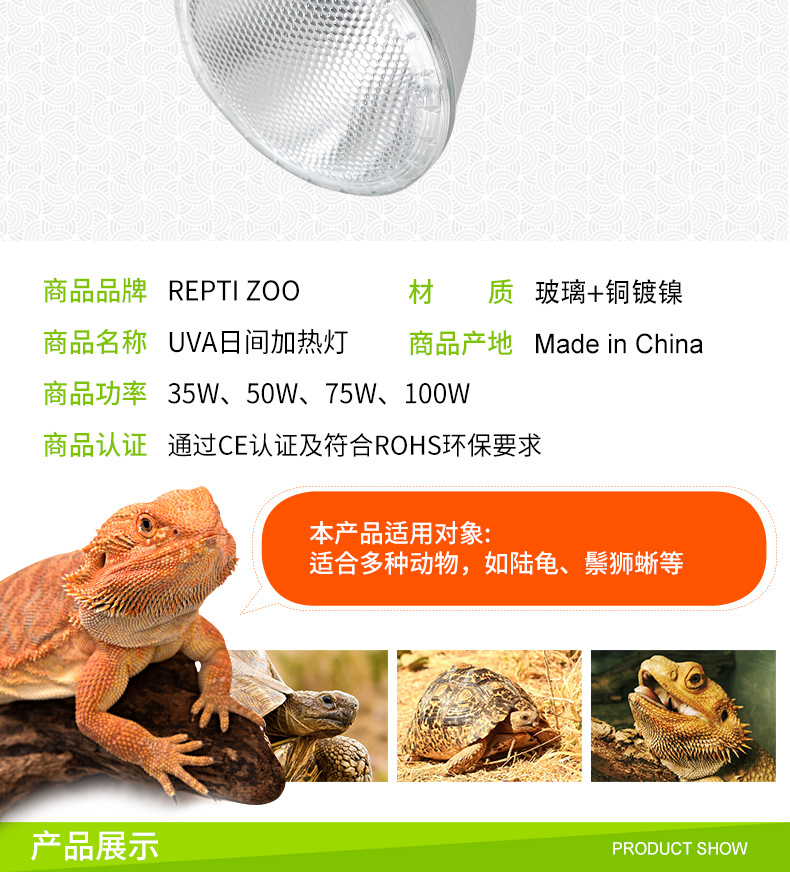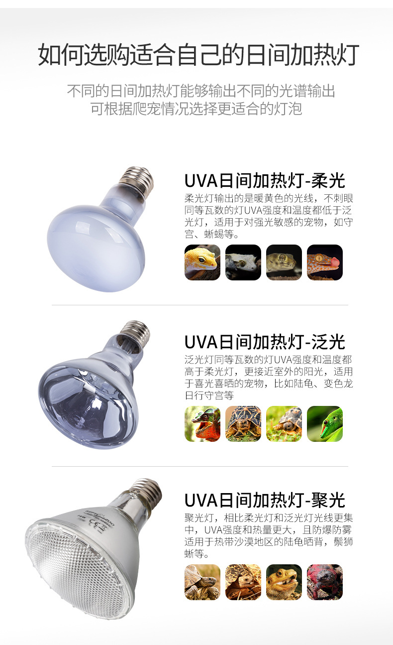 新派ペットreoptizoo爬虫類uvaランプ保温加熱電球トカゲ蛇守宮陸亀日焼けバックライト