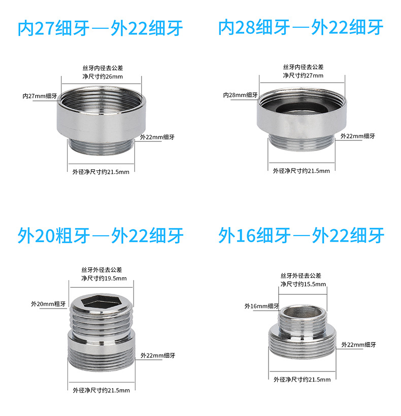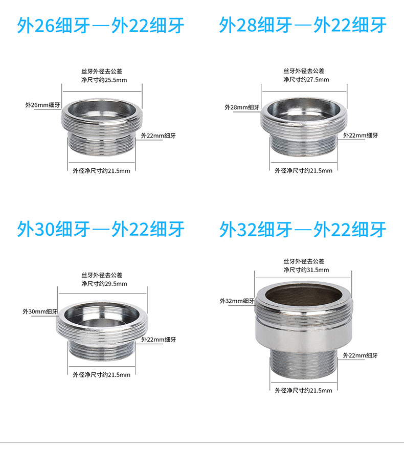 水嘴水龙头变径接头内外22细牙净水器喷水枪4分转换螺丝转换接头