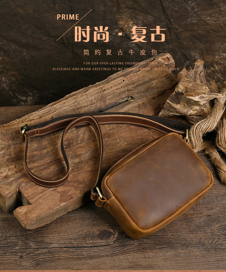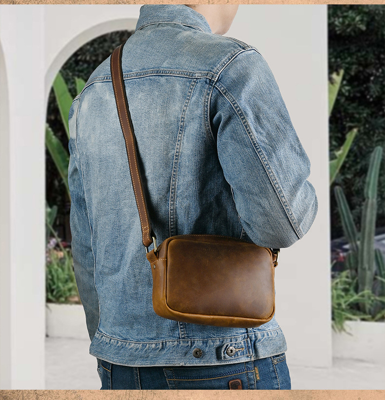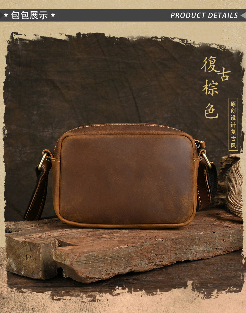 高級メンズクロスボディバッグ、メンズフル牛革ショルダーバッグ、メンズバッグ、本革レトロクロスボディバッグ、小型メッセンジャーバッグ