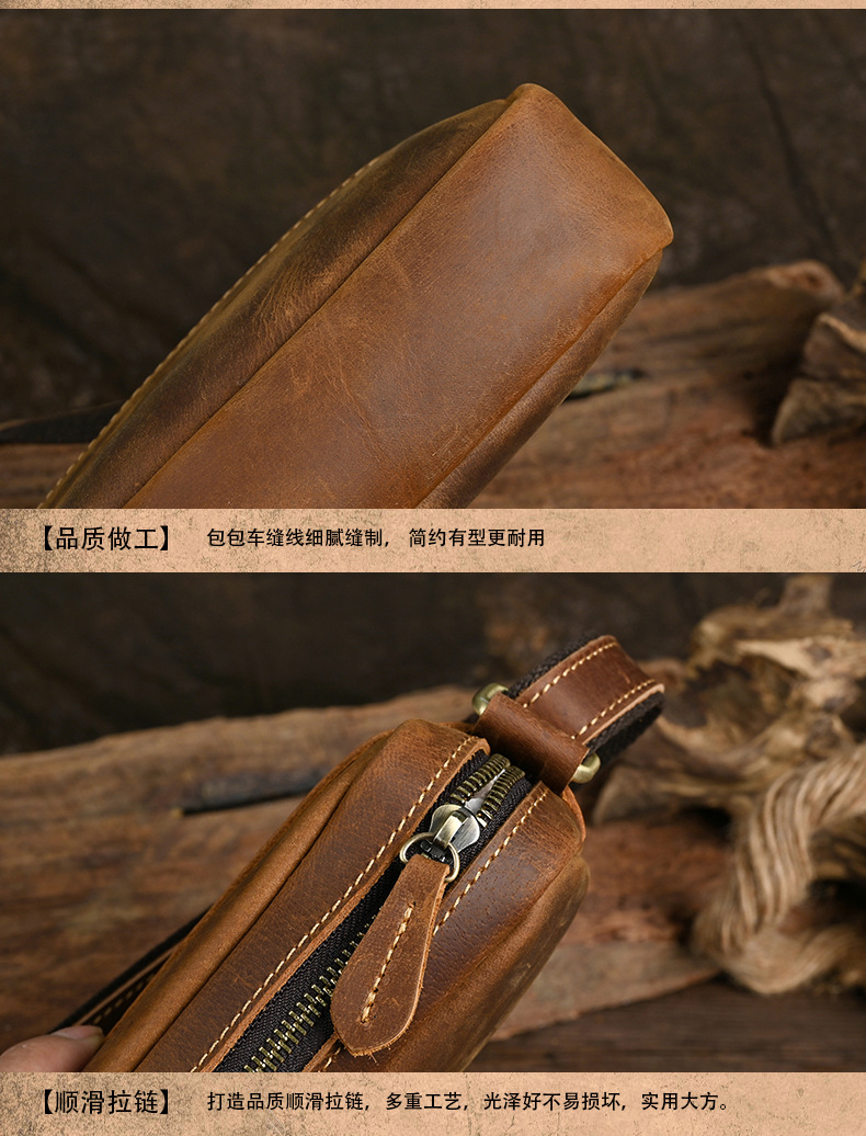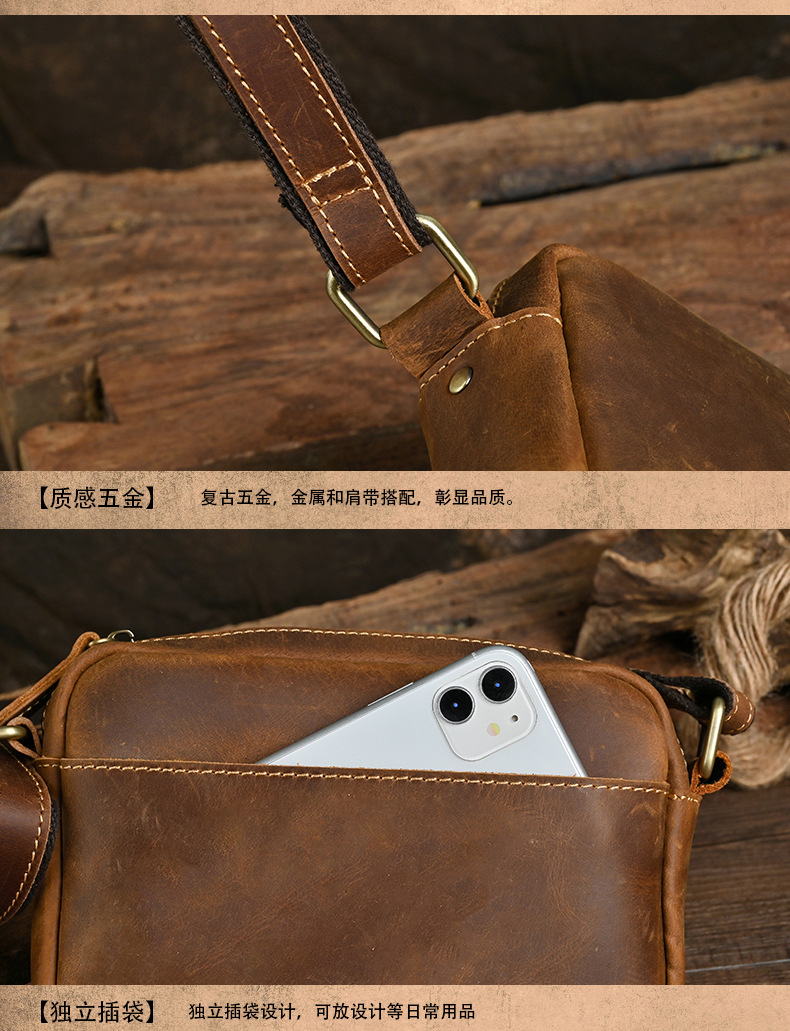 男性の本革のショルダーバッグは気が狂っています。軽い斜めショルダーバッグの頭層牛革カジュアル携帯電話の傘のショルダーバッグは男性用です。