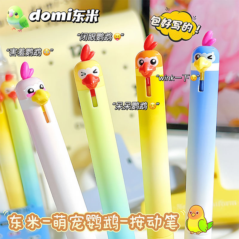 东米2509萌宠鹦鹉创意搞怪解压按动中性笔INS高颜值学生黑色0.5笔