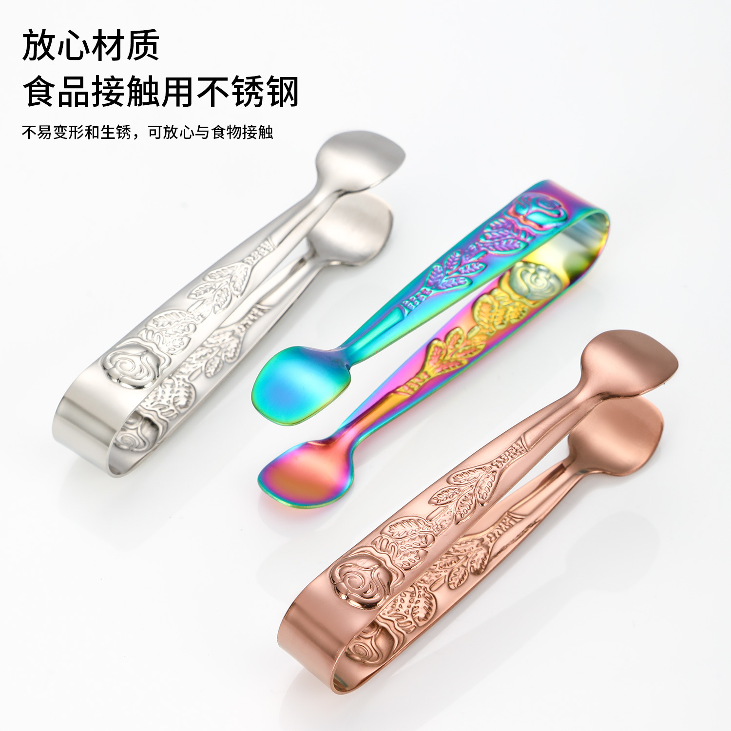 クロスボーダー 304 ステンレス鋼アイスクリップインターネット有名人ハンマーパターン角砂糖小さなクリップ肥厚アイスキューブクリップアイスプライヤーローズクリップ