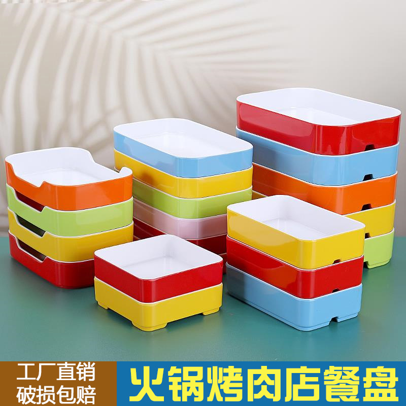 火锅店串串香长方形双色商用配菜自助烤肉盘子塑料餐厅密胺餐具