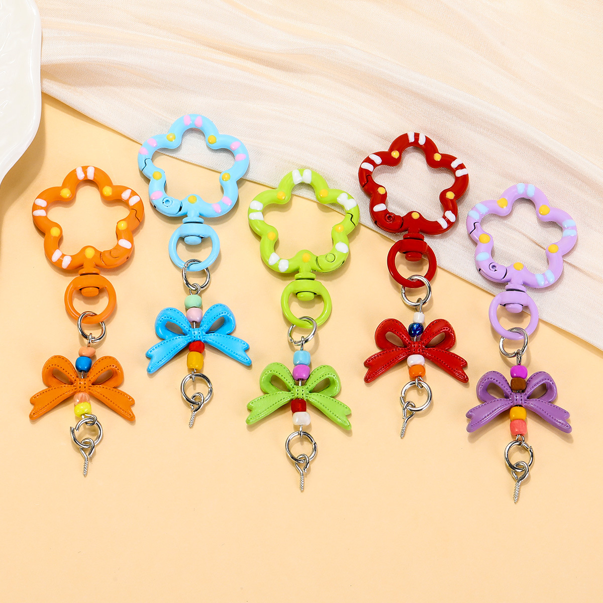 DIY饰品配件糖果色烤漆花朵弹簧扣 挂飘带蝴蝶结羊角钉钥匙扣挂件