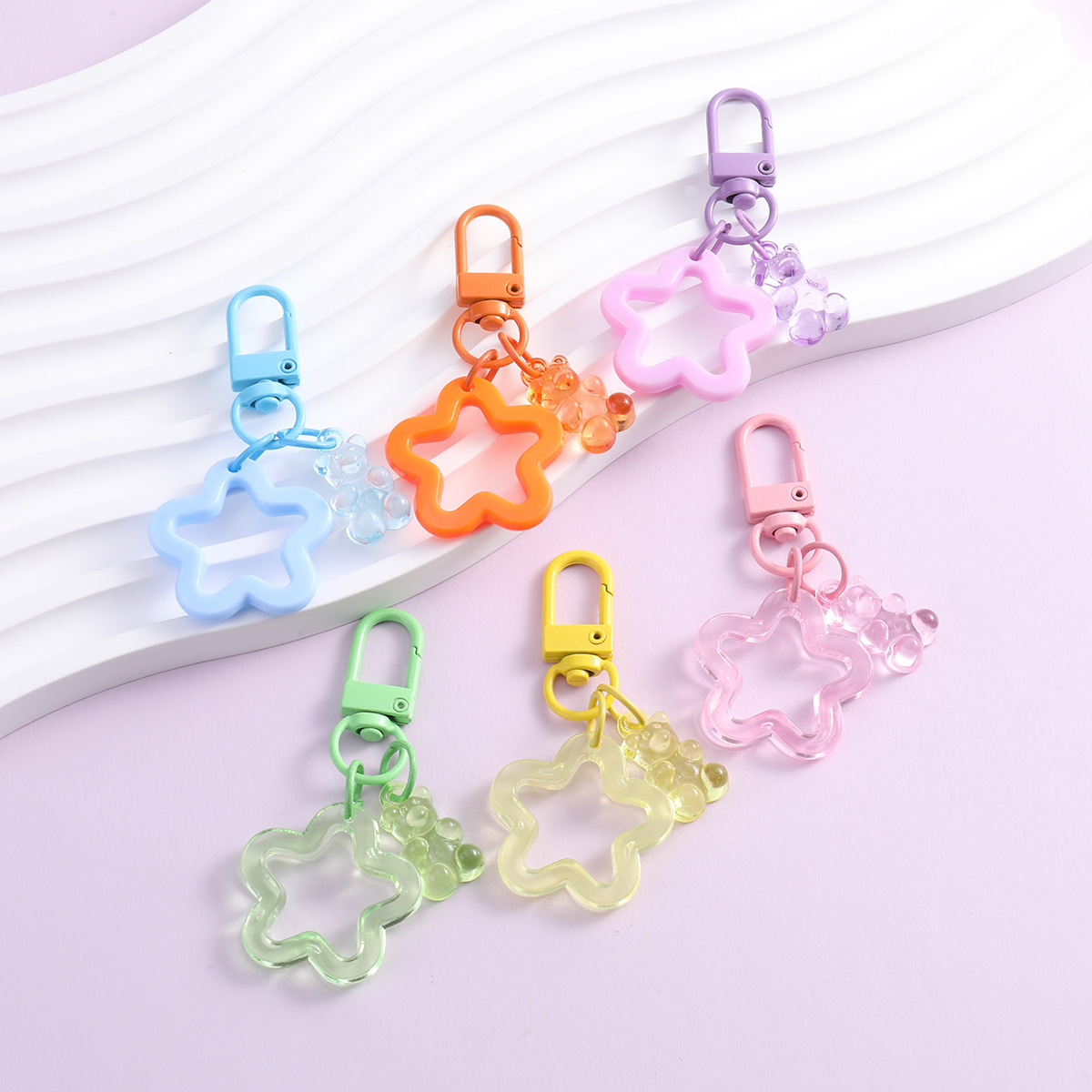 DIY饰品配件彩色透明小熊五角星钥匙扣小挂件 手工包包钥匙圈挂饰