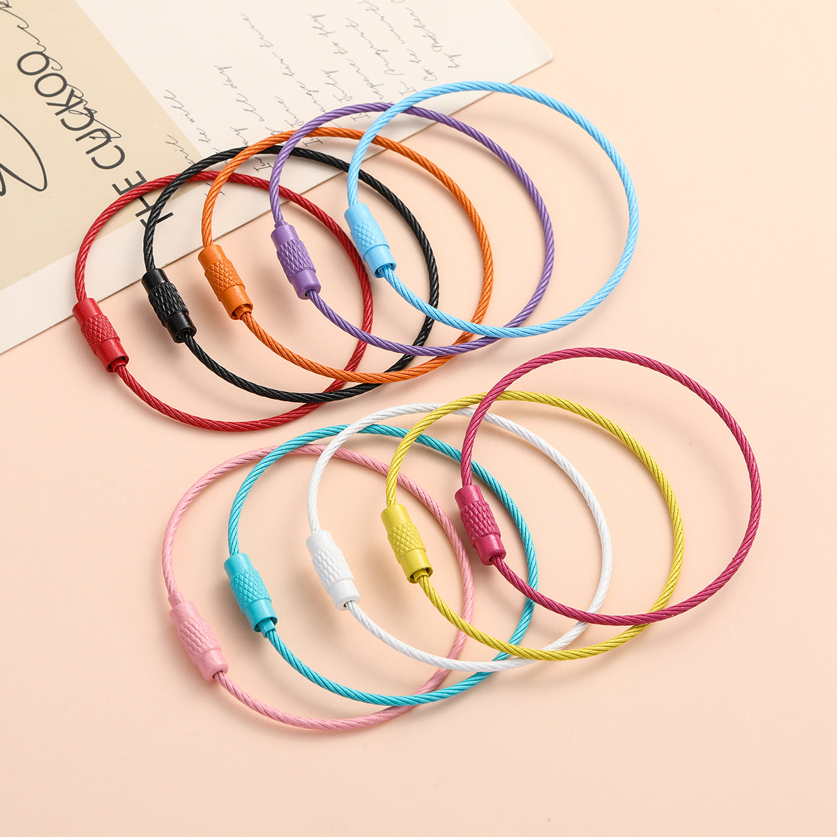 糖果色烤漆钢丝绳钥匙扣钢丝圈 diy饰品配件可拆旋转螺丝钥匙圈环