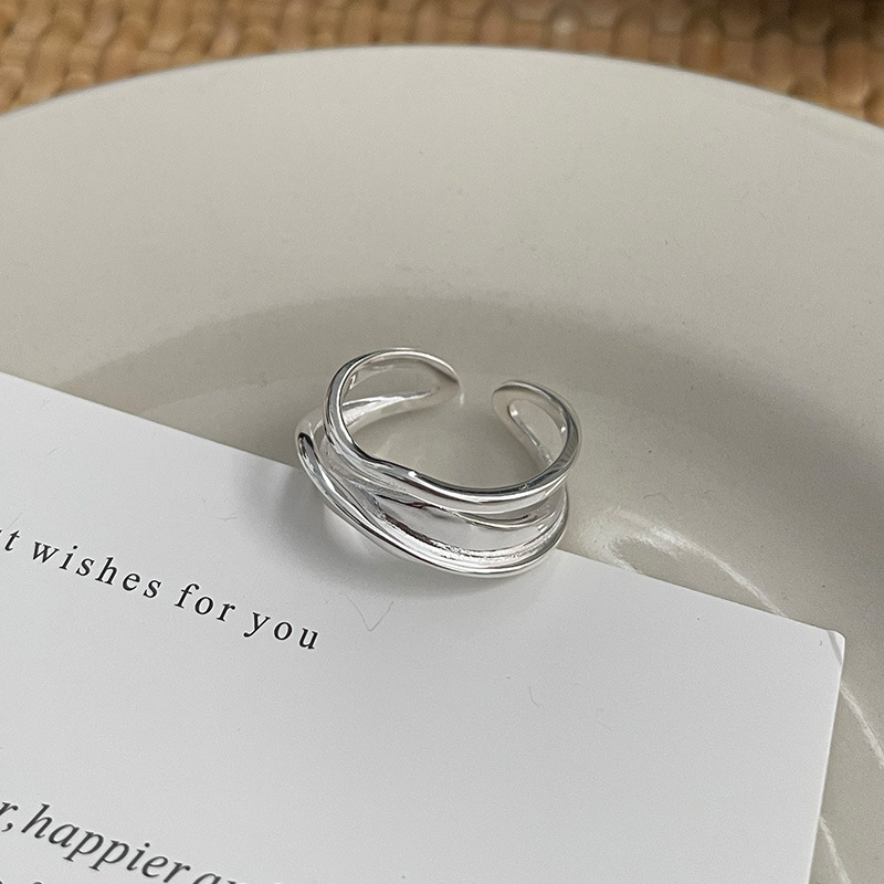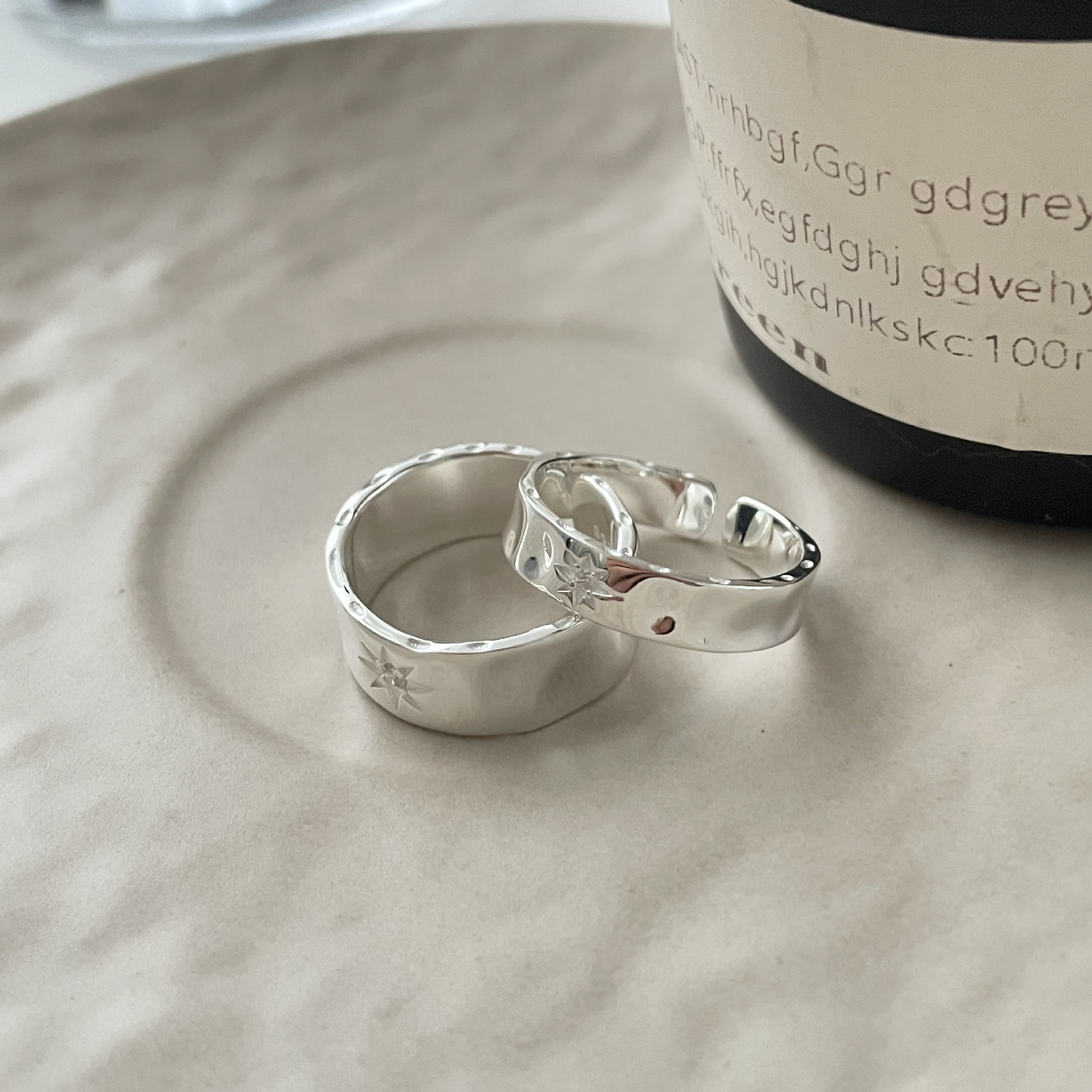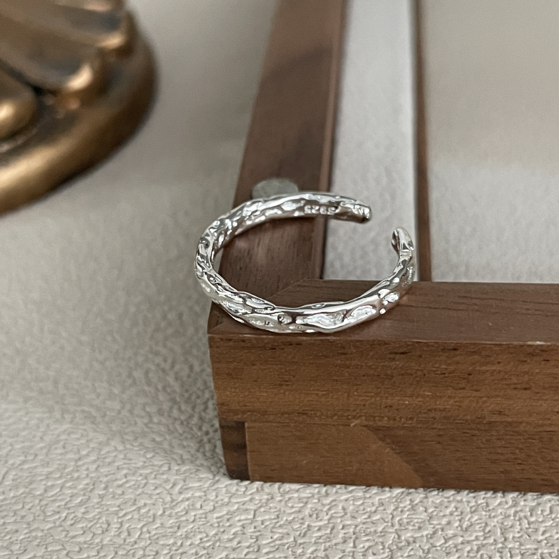 イナS925純銀錫紙の質感の個性的な開口指輪の女性日韓INSシンプルな冷たい風の指の指輪