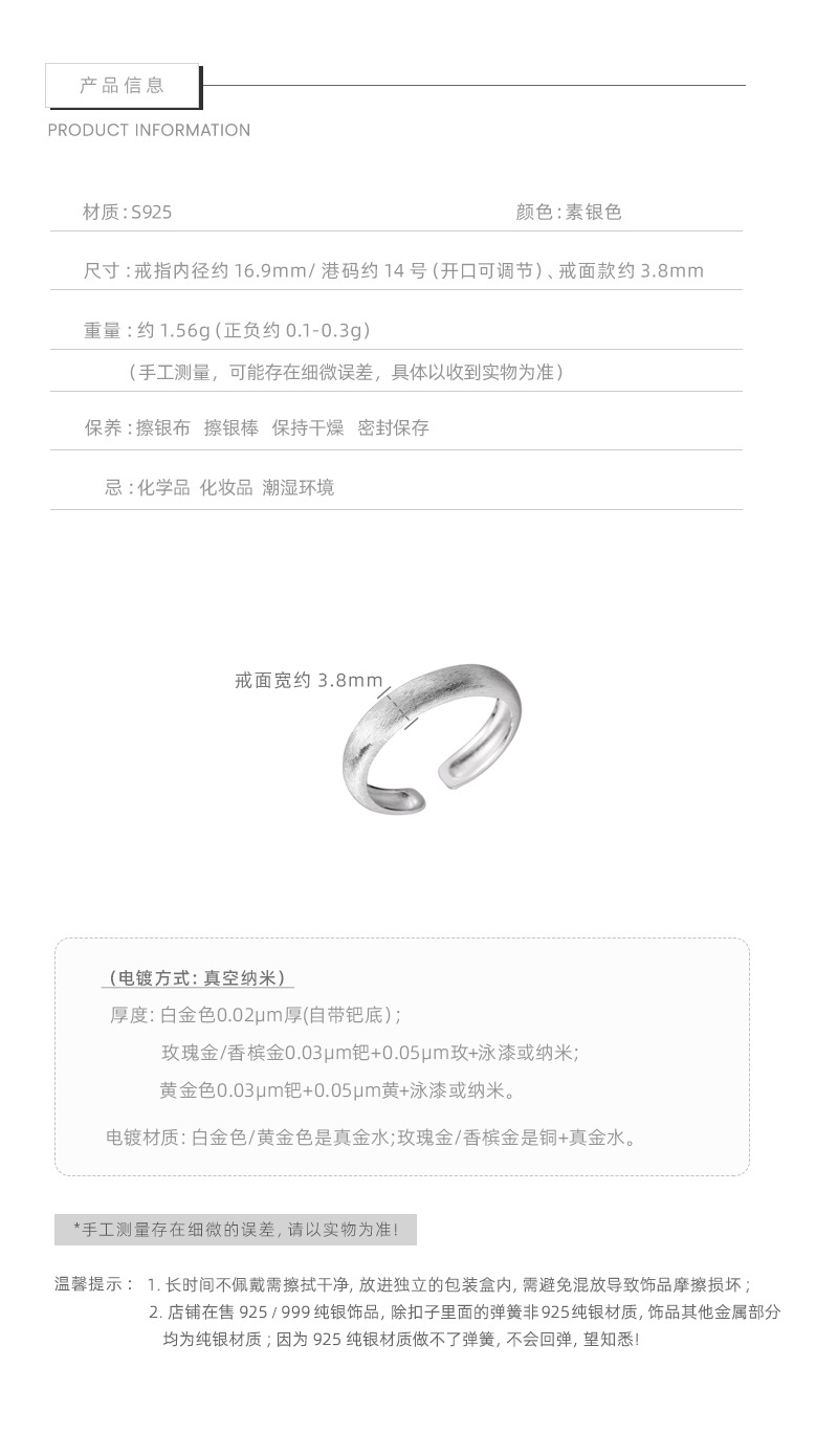赛伊娜S925纯银泥鳅背素圈戒指小众设计简约时尚可叠戴开口戒指环
