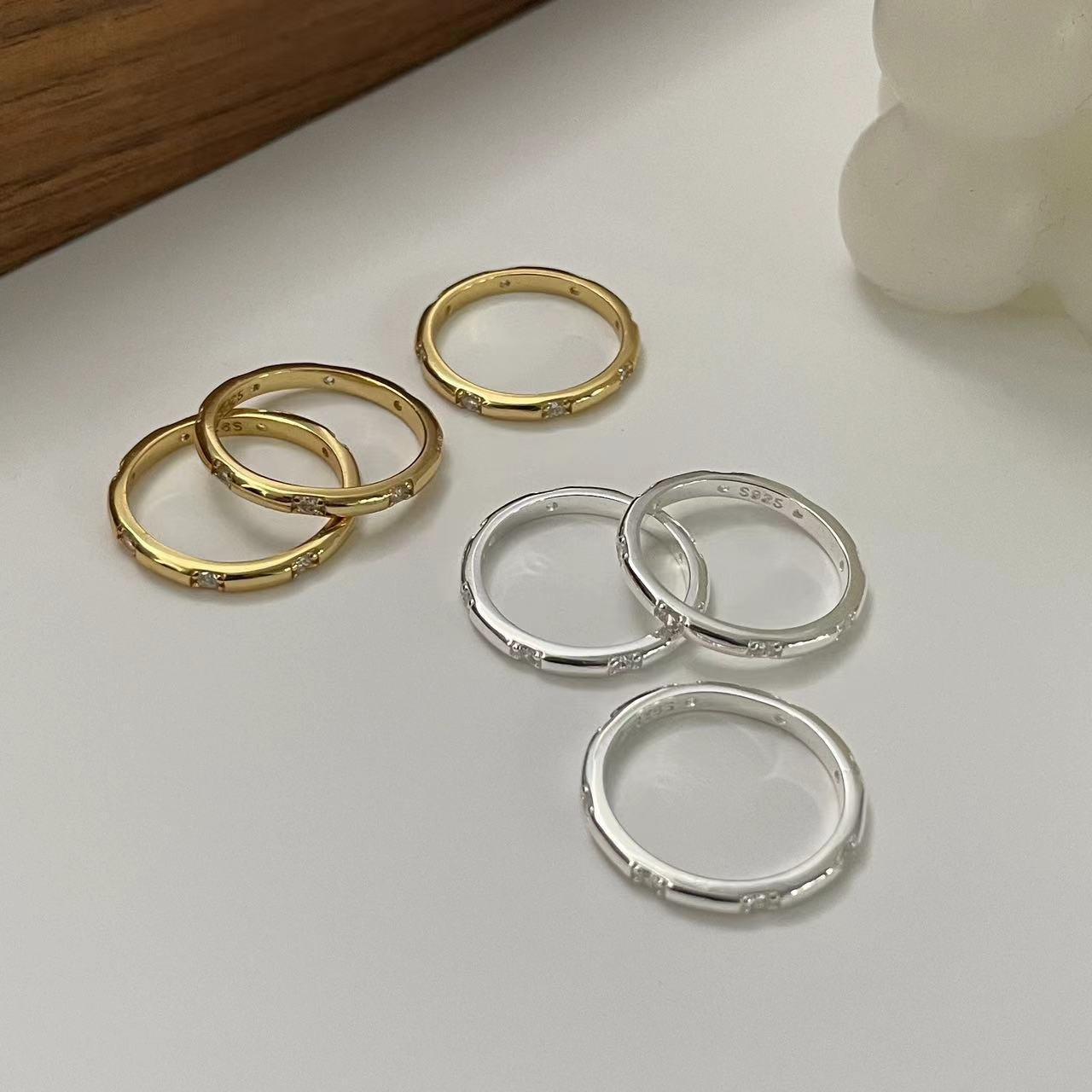 S925纯银韩版小众设计感复古锆石戒指简约素圈指环小红书热卖款