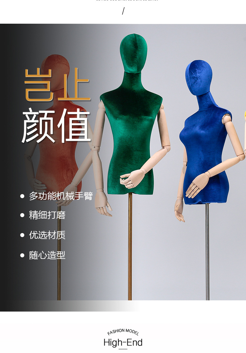モデルの道具の女性の半身の人台のカラーのベルベットの服の店の韓国版は頭を持って全身のウェディングドレスのモデルの展示棚の女性を持ちます。