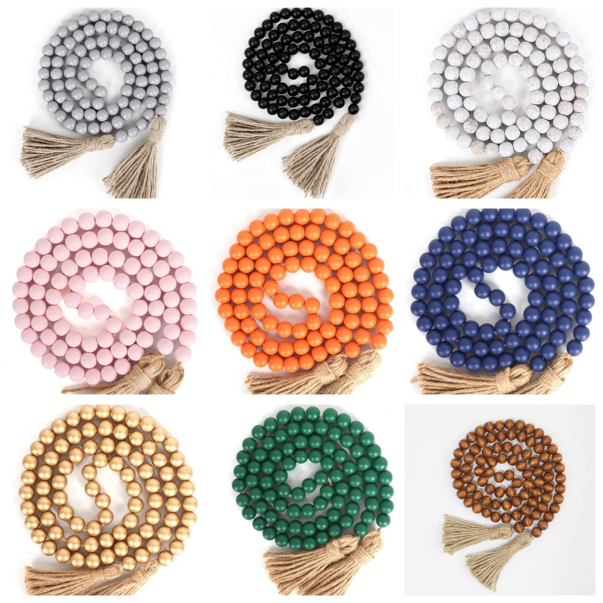 58インチ田園風帯流蘇カラー木珠串は古い珠串欧米の家庭装飾木珠ストラップを作る