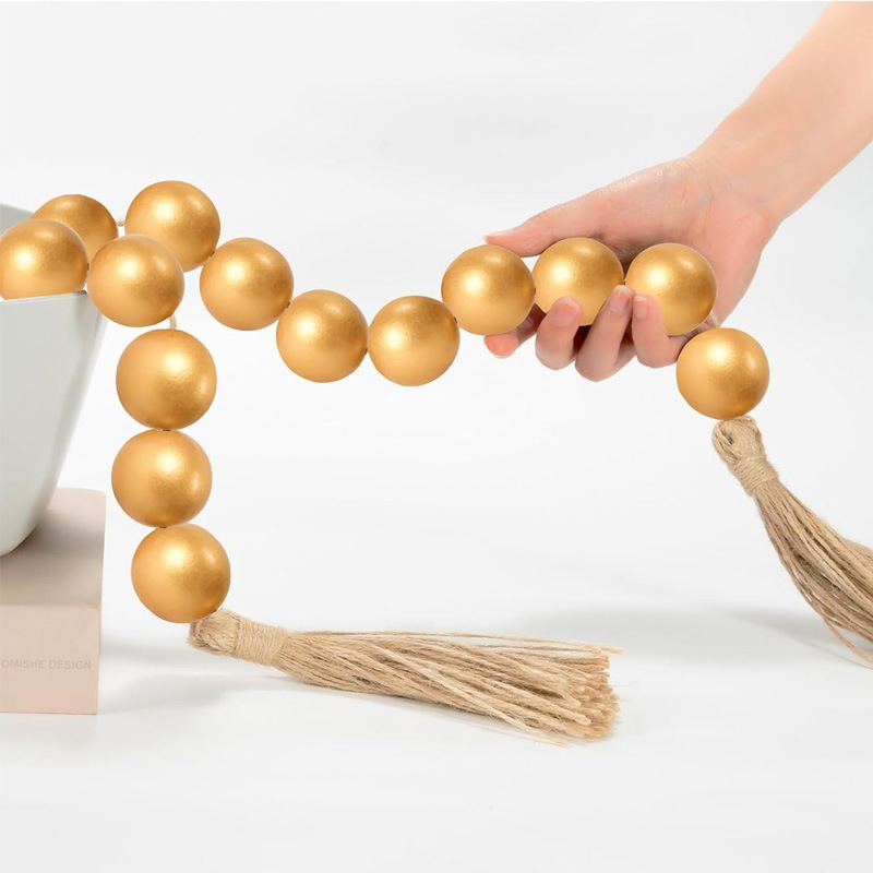 木製ビーズストリング麻紐フリンジ欧米風ホームガーデン風home木製ビーズ花輪レトロインスタ風木製飾り