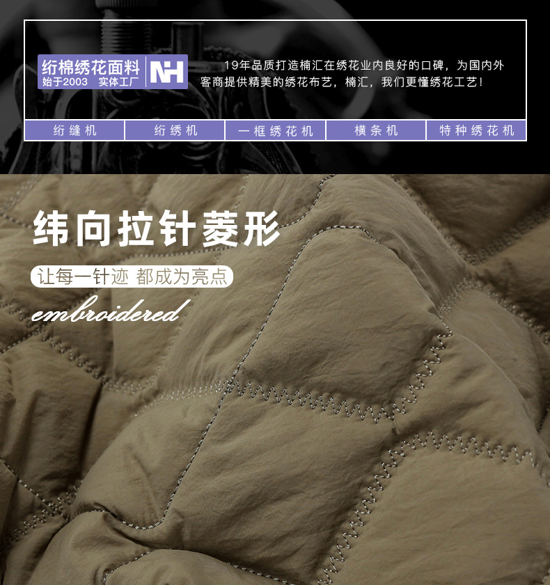 刺繍生地のナイロンキルティングは綿を挟んで、針の菱の形の綿の服を引っ張ります。
