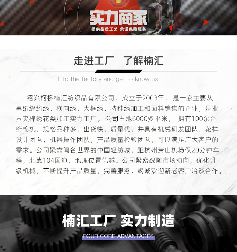 刺繍生地キルティング春亜紡織生地刺繍綿衣綿愛挟み綿紡織コンピュータ回縫キルティング刺繍工場