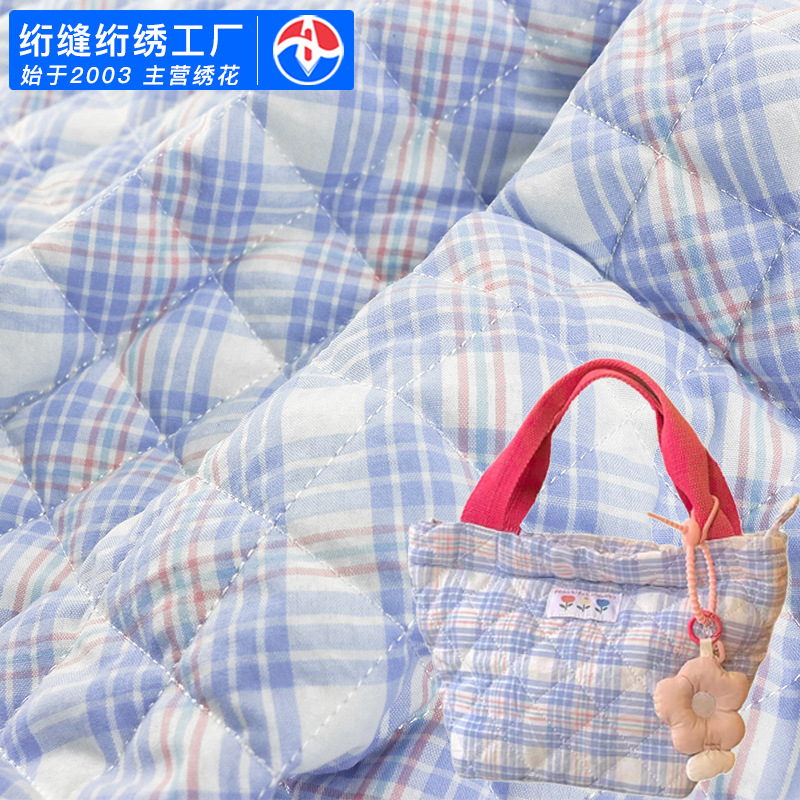 工場直送ナイロンしわ菱形チェック柄キルティング刺繍生地綿衣類バッグ靴帽子クッションドアカーテン手作り生地