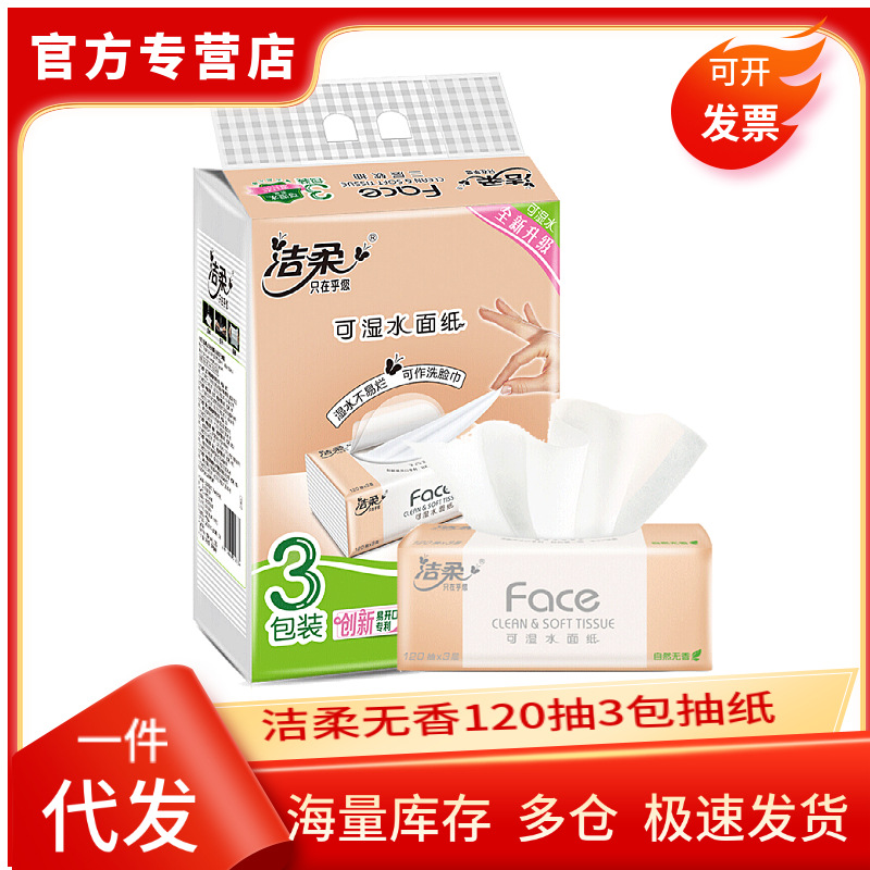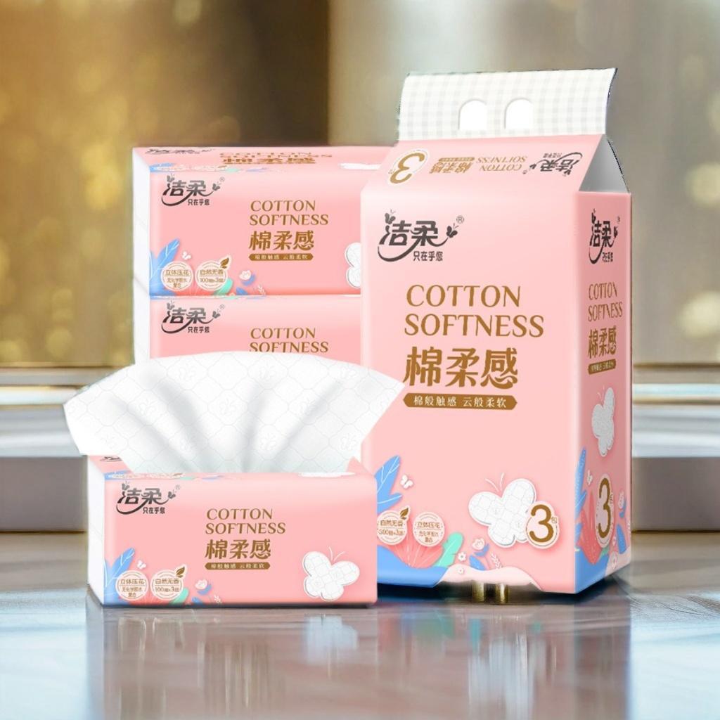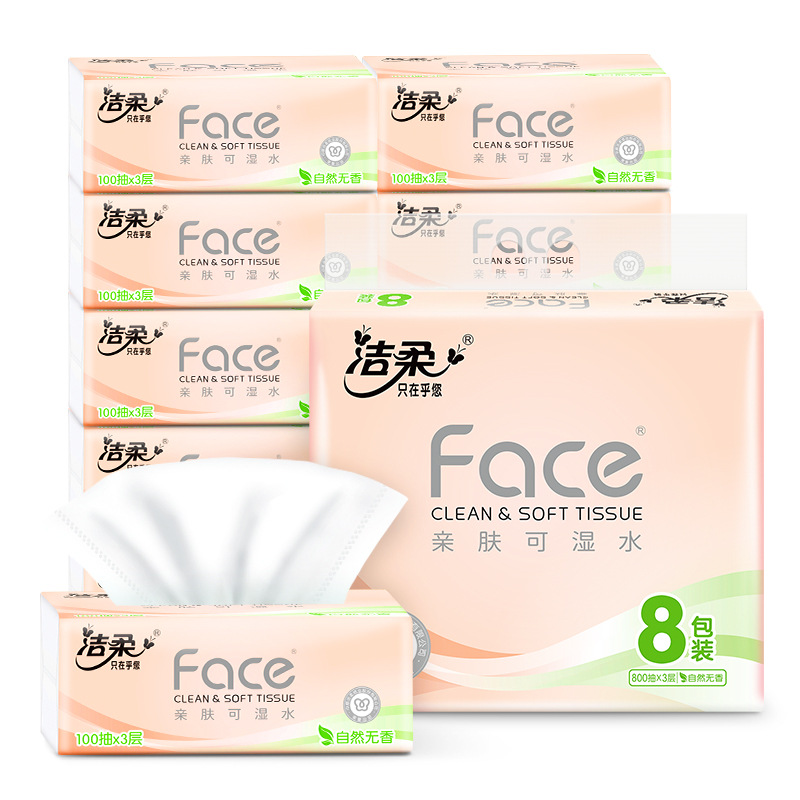 洁柔抽纸3层100抽8包家用大包纸巾抽纸卫生餐巾纸整箱实惠装批发