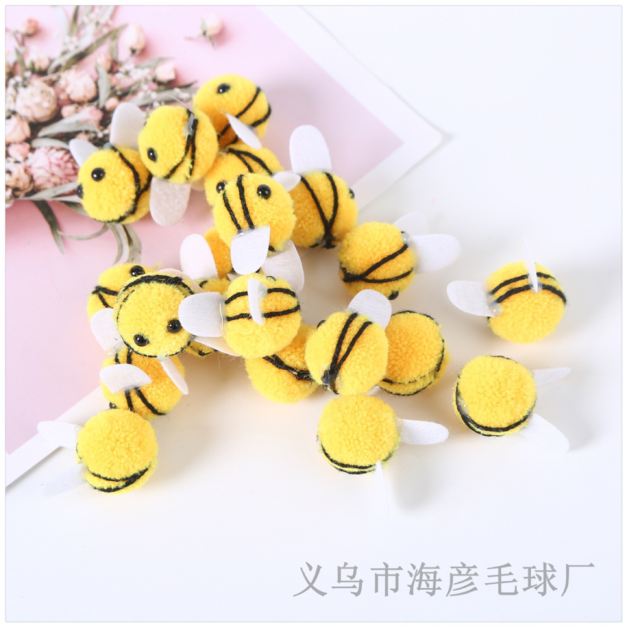 アニメかわいいミツバチの装飾開糸米修円毛玉手作りdiy編み完成品服装飾り毛玉
