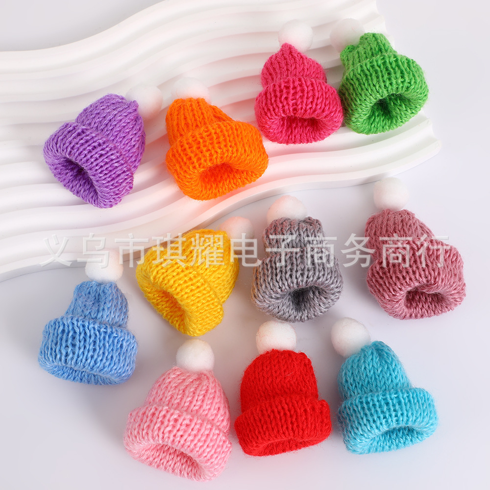 国境を越えたクリスマス装飾カラー毛糸ニットミニ帽子diy玩具服装部品卸売り