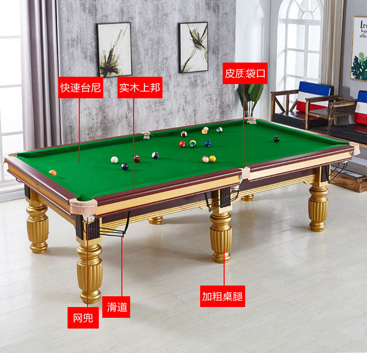 台球桌标准台球厅台球桌中式黑八家用台球桌子室内标准型商用球桌