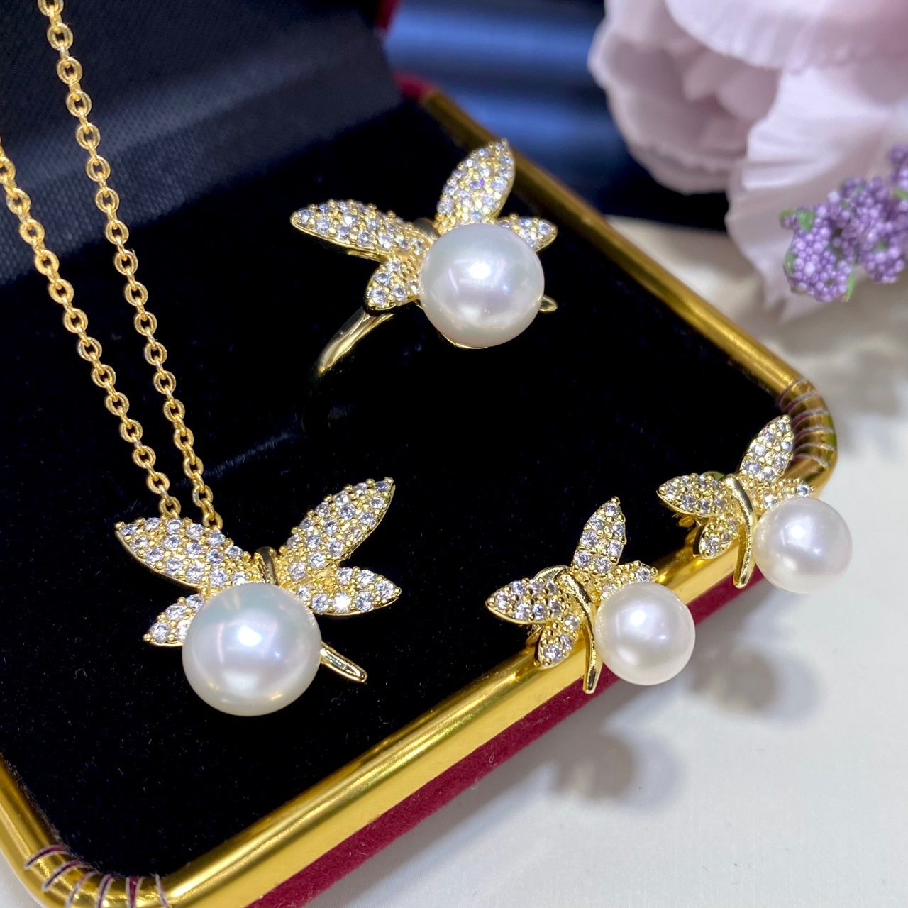 2025年新型淡水真珠セットペンダント天然真珠指輪クロスボーダープレゼント年間卸売り