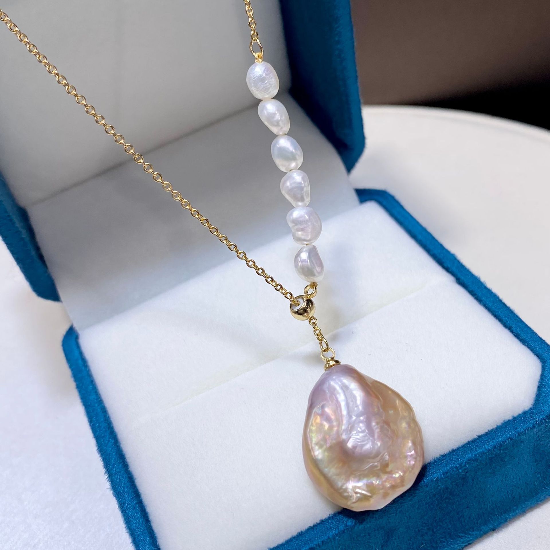 天然淡水バロック異形珠幻彩エジソン真珠ペンダント欧米対外貿易金ボタン粉紫真珠