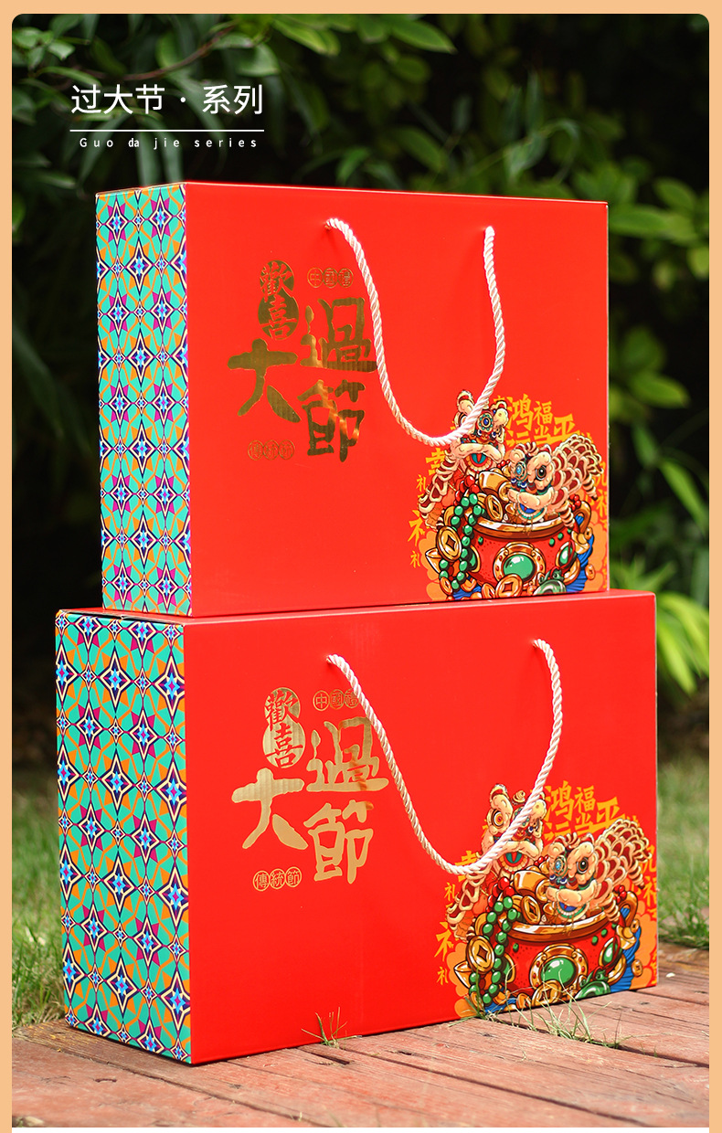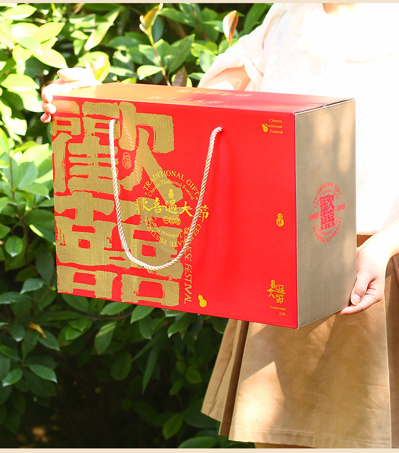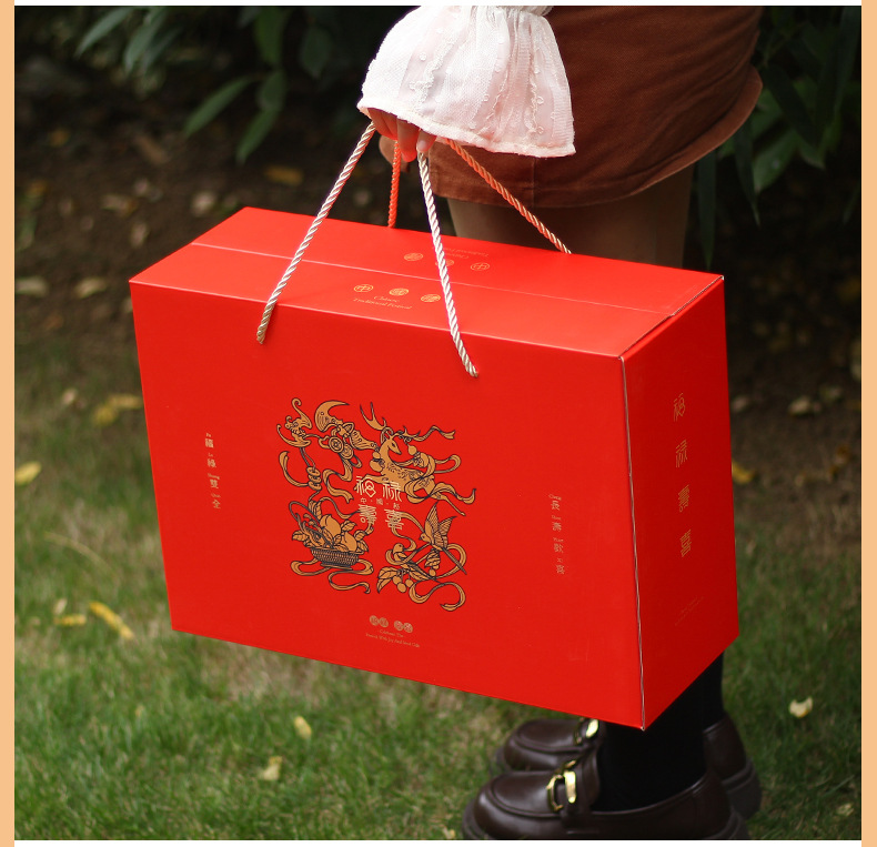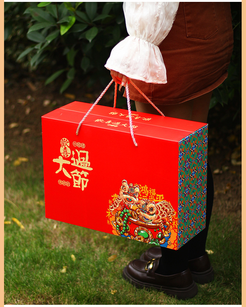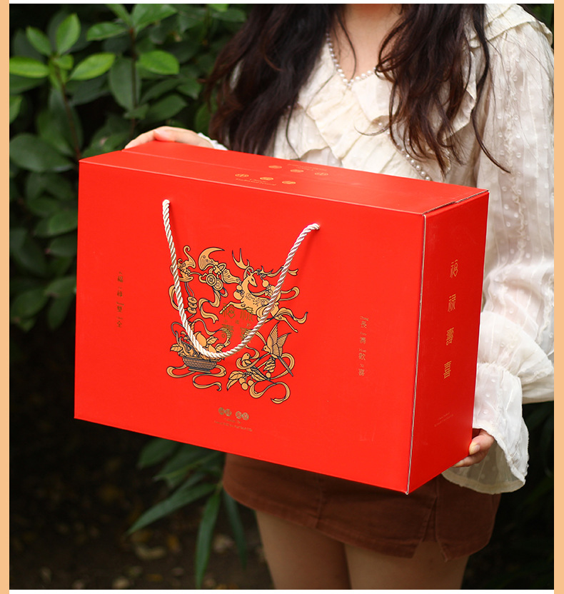 【祝日共通トランペット】年物持参ギフトボックス包装箱特産熟食スーツケース4/6斤赤緑