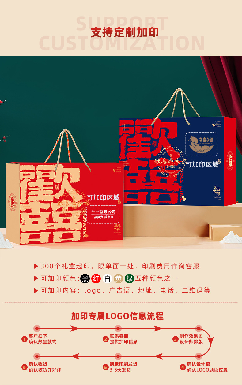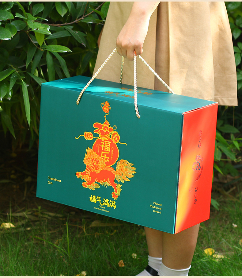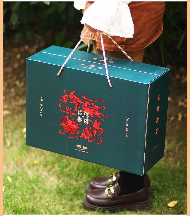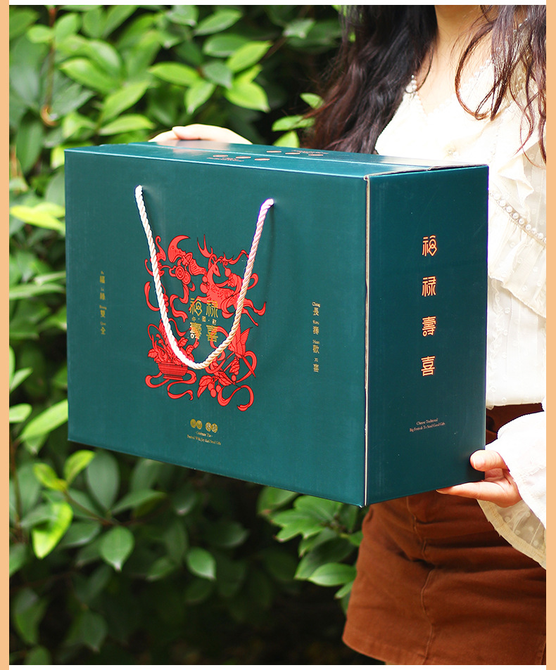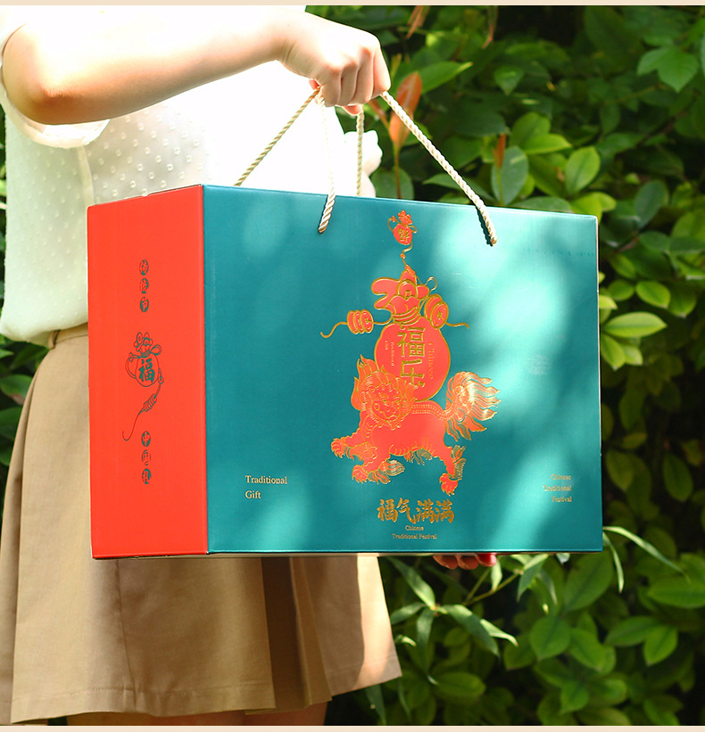 【祝日共通トランペット】年物持参ギフトボックス包装箱特産熟食スーツケース4/6斤赤緑