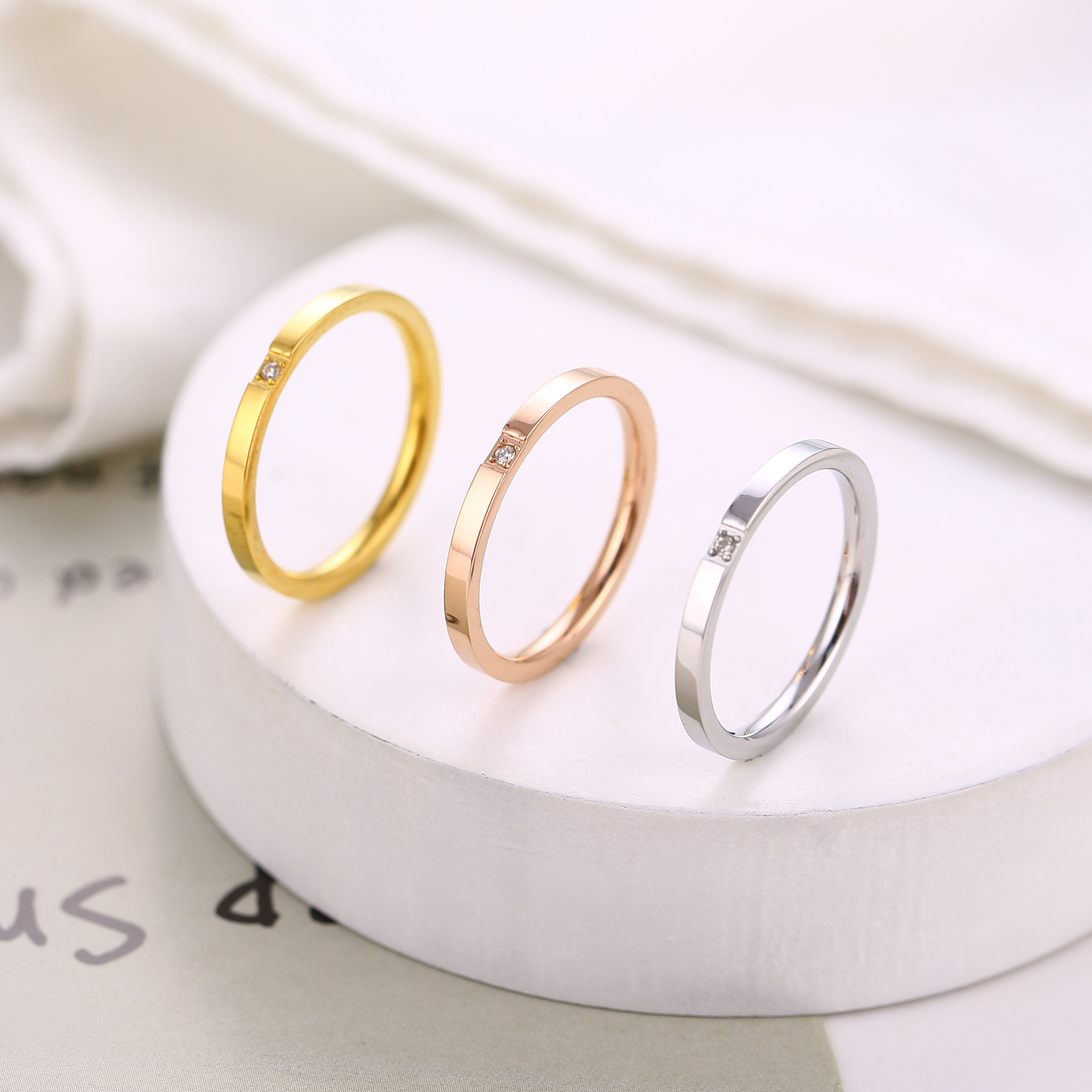 日韩时尚钛钢一粒钻戒指女简约玫瑰金情侣对戒不锈钢指环手饰品