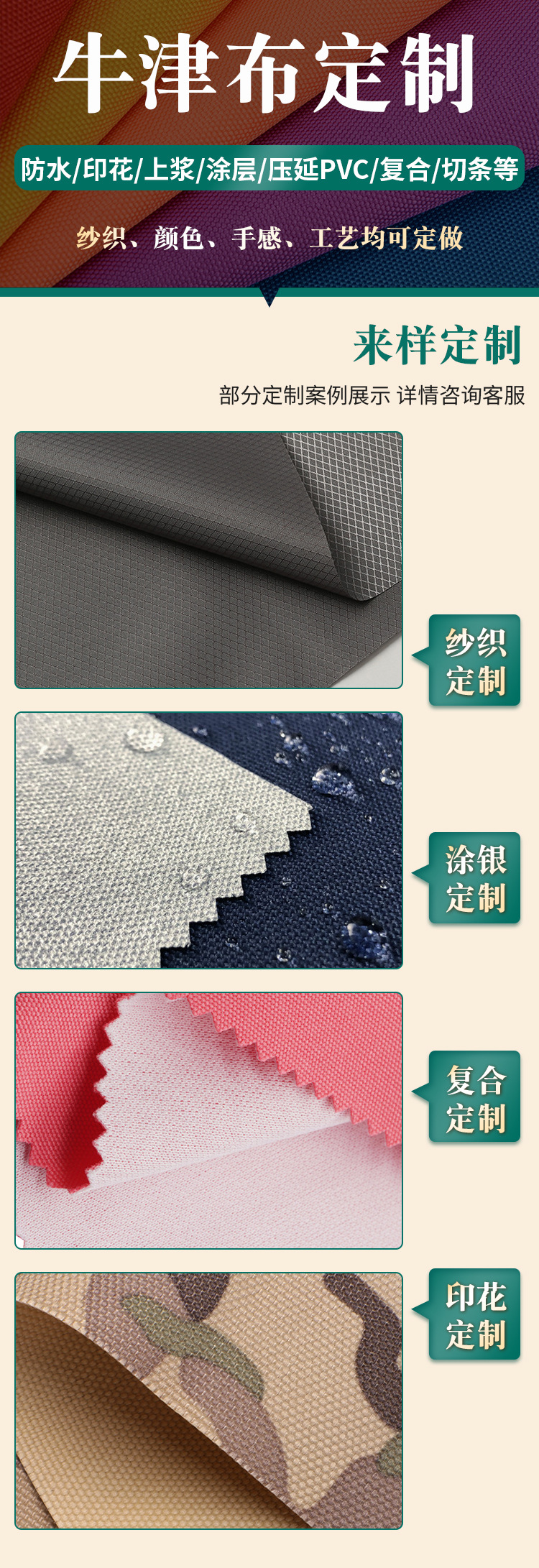 ポリエステルナイロン古治オックスフォード材料防水コーティングpuコーティングpvc皮膜表面耐摩耗性バッグ手袋屋外生地