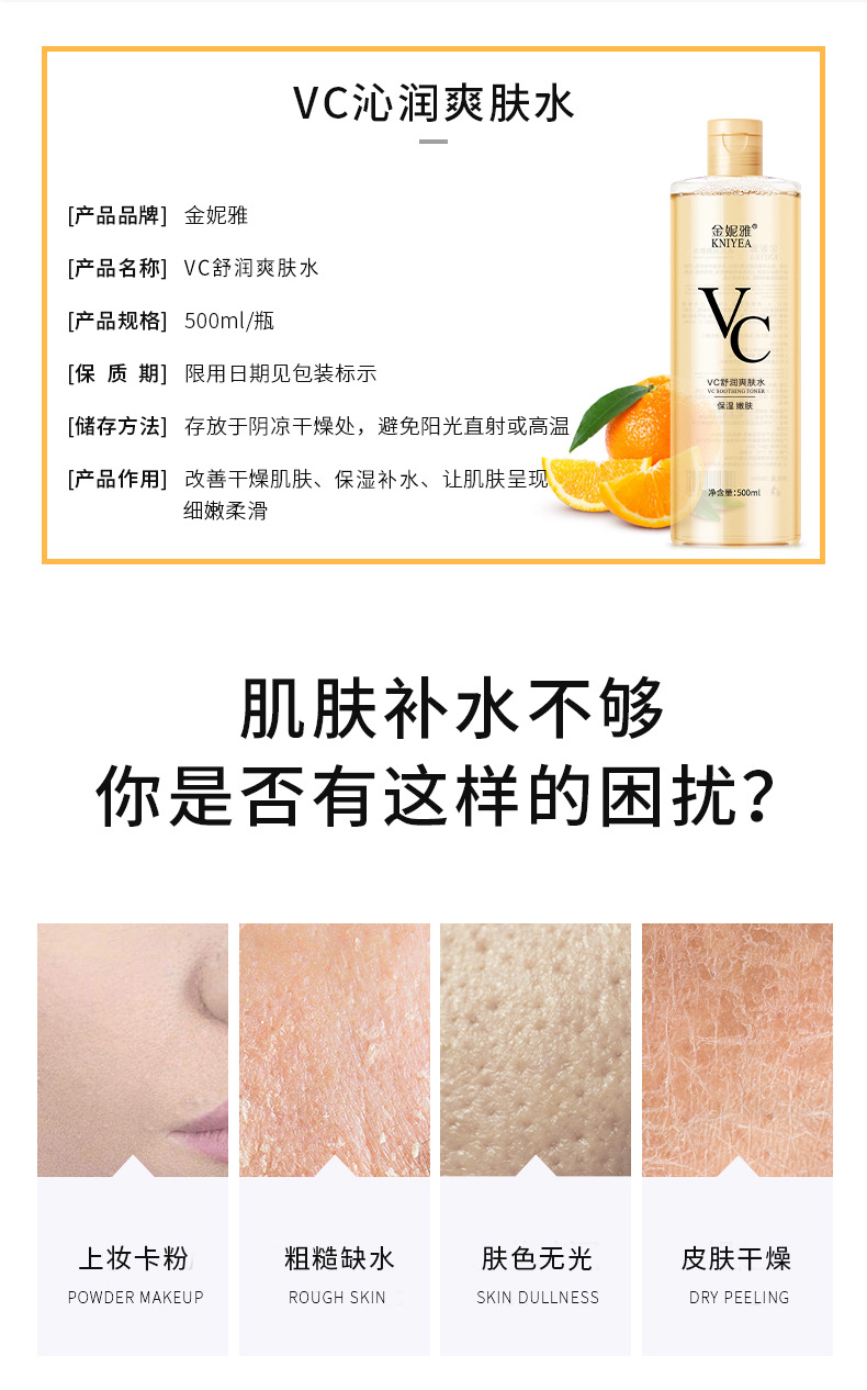 【包邮】金妮雅vc爽肤水清爽补水湿敷精华保湿水500ml大容量现货