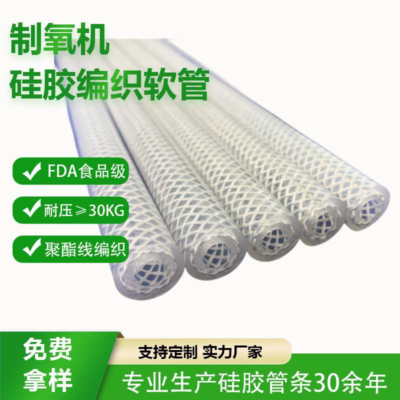 卸売酸素濃縮器用シリコンチューブ、白金加硫編組シリコンチューブ、強化ポリエステル繊維編組層耐圧チューブ