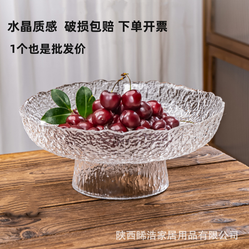 高脚玻璃水果盘多层水晶玻璃盘家用轻奢点心零食盘日式冰川纹果盘