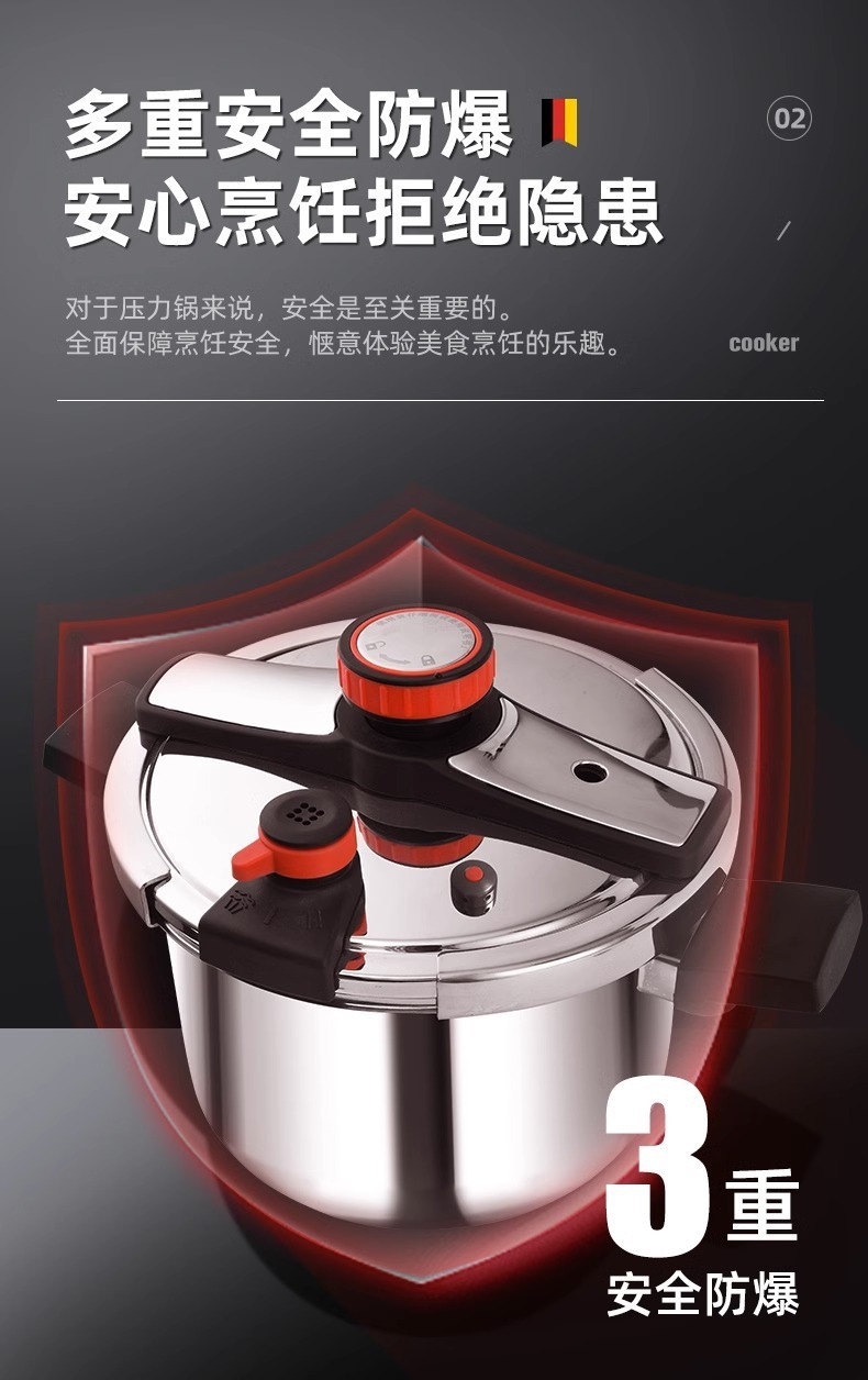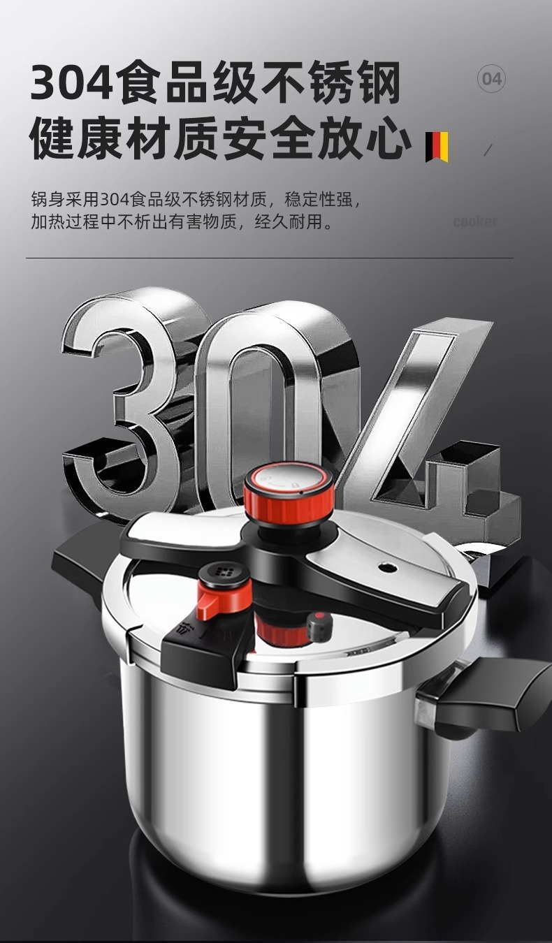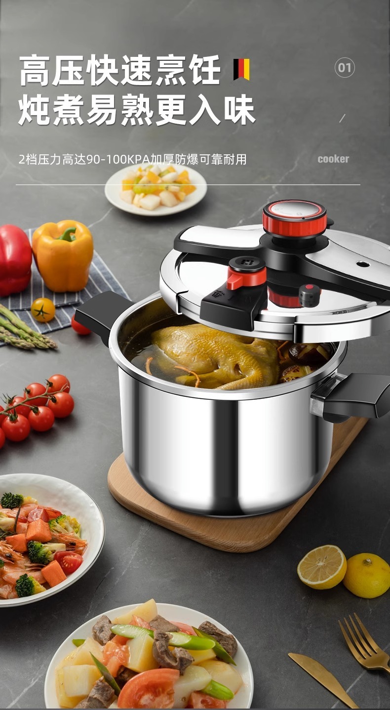 德国高压锅家用304不锈钢加厚防爆压力锅大容量电磁炉通用食品级