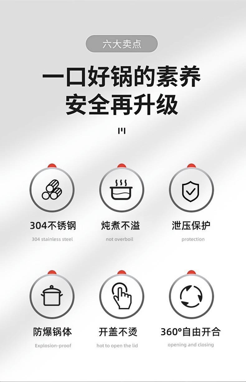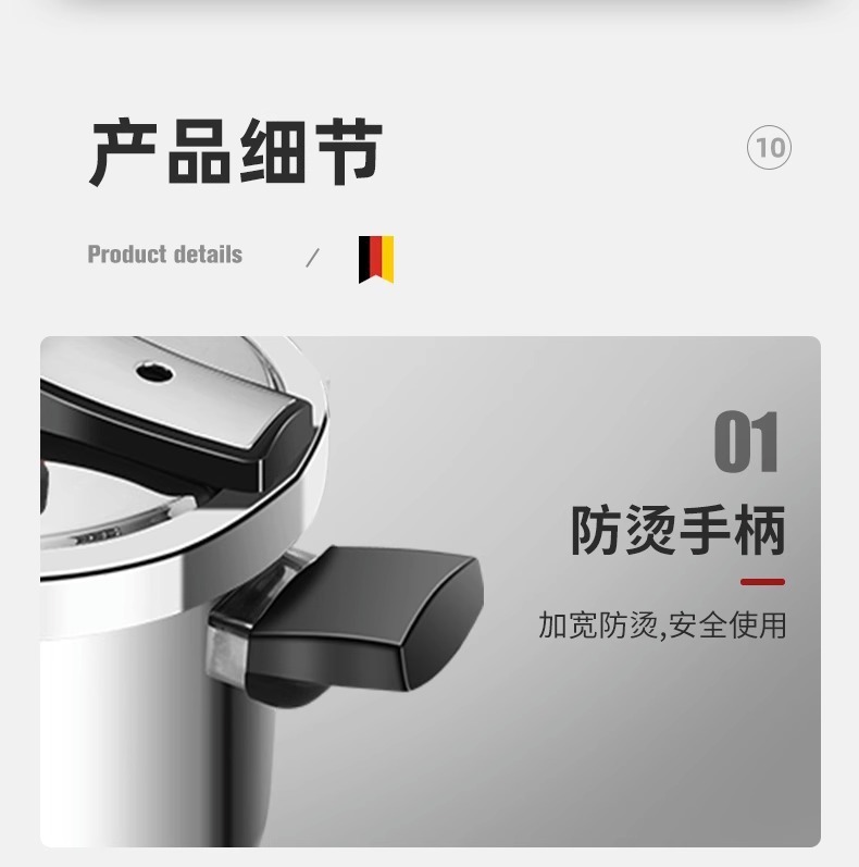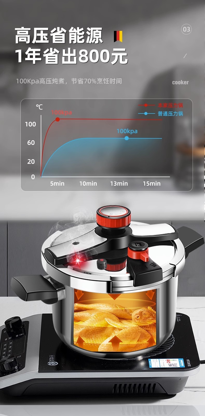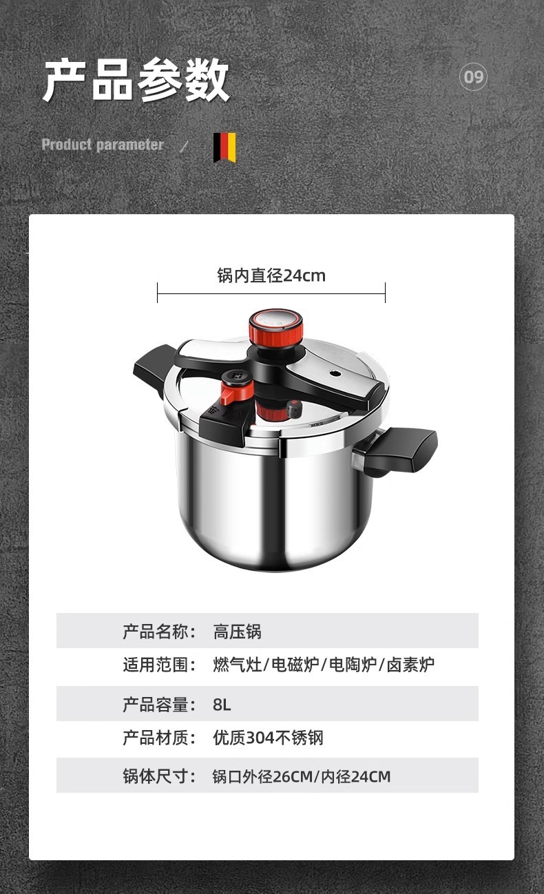 德国高压锅家用304不锈钢加厚防爆压力锅大容量电磁炉通用食品级