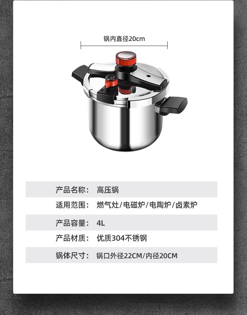 德雷克思新款不锈钢家用高压锅加厚加厚防爆压力锅燃气电磁炉通用