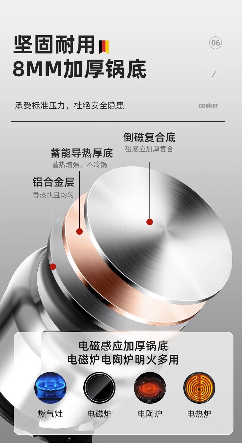 AEU 304ステンレス高圧鍋6l 8l家庭用厚い防爆圧力鍋三段煮込み省エネ鍋具