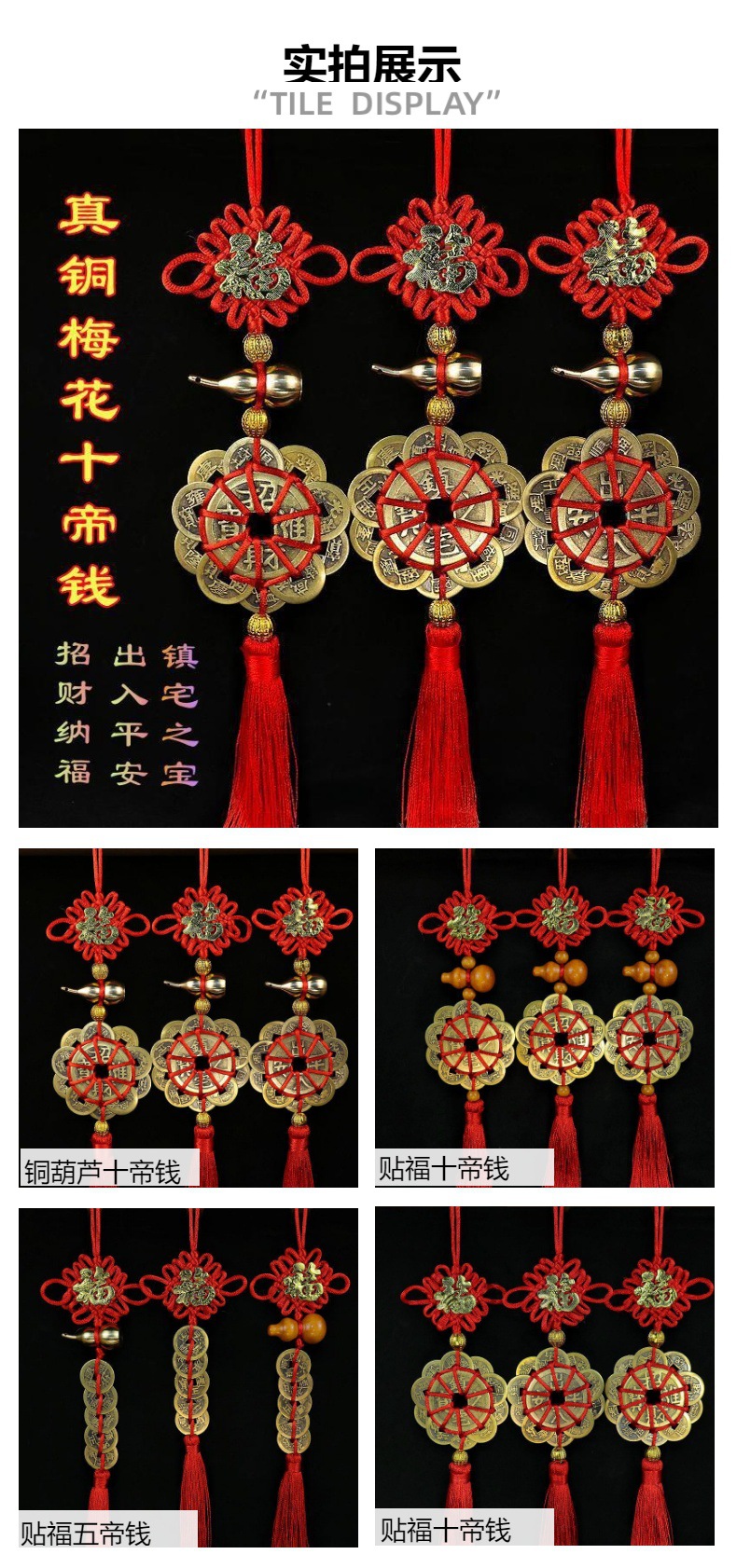 品名:中国结贴福铜葫芦梅花十帝钱挂件