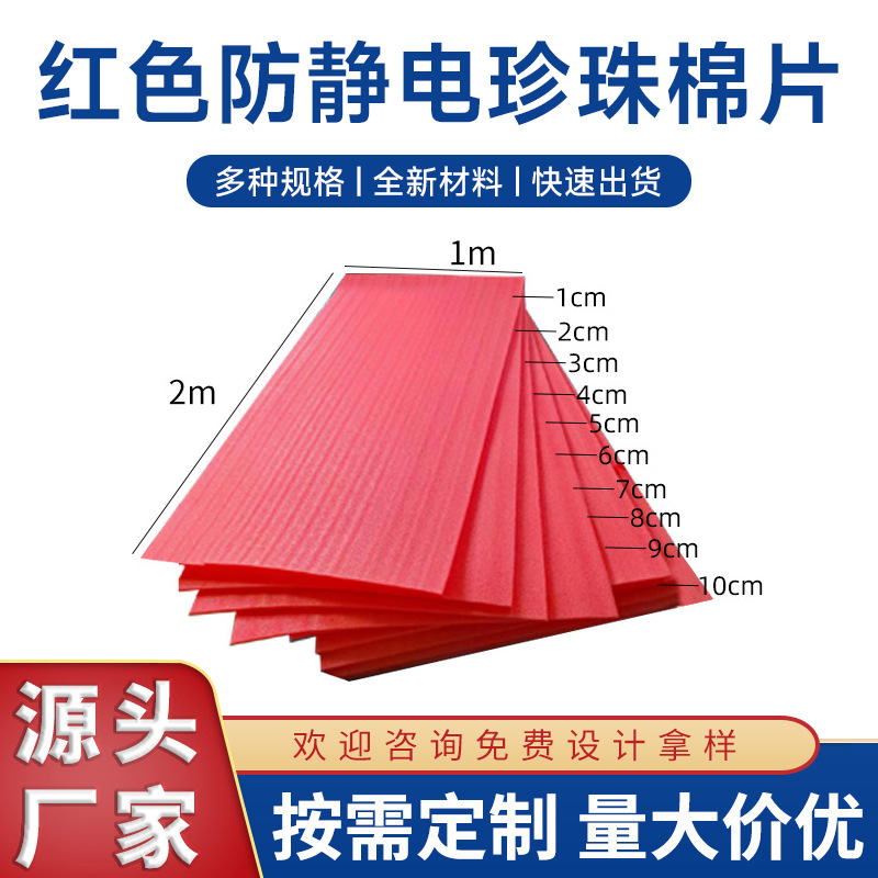 卸売り赤色帯電防止電子包装真珠綿片1-10cm厚スポットメーカー異型epe発泡綿