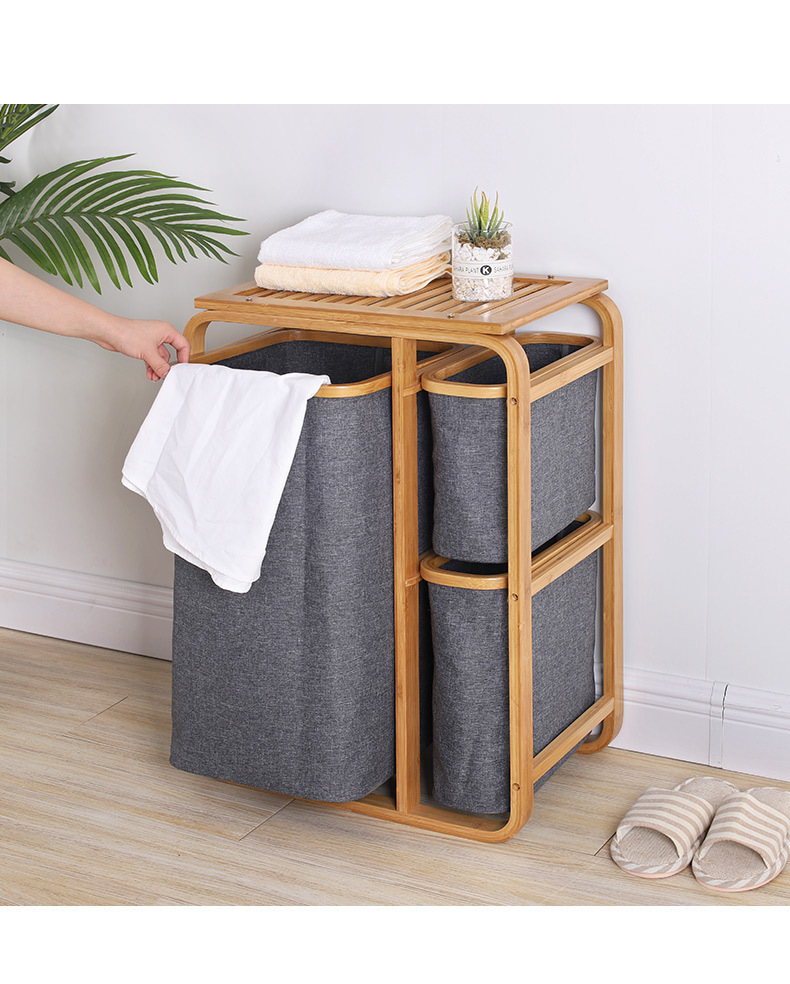 Ins風北欧折り畳み可能楠竹分類収納かご綿麻収納棚汚れた服かご汚れた服かご家庭用