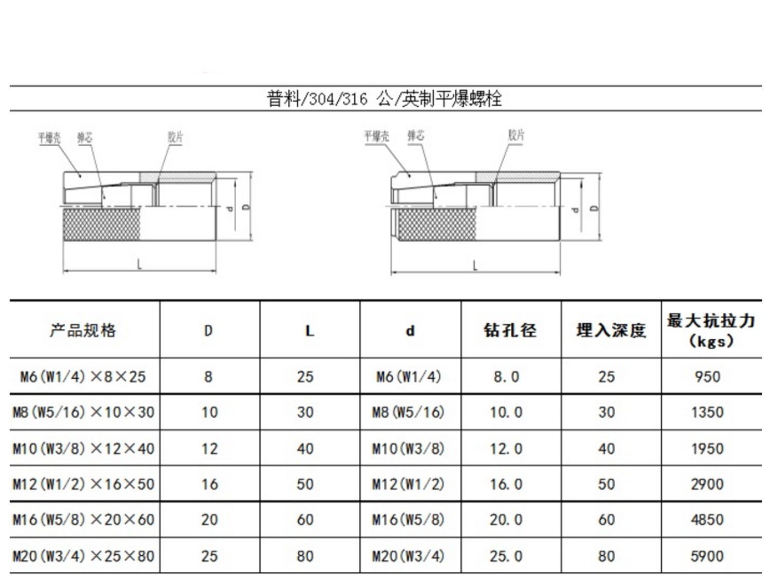 鵬馳eg亜鉛メッキトップ爆内爆発膨張平爆ボルトヤモリ内膨張ボルトM6-M20