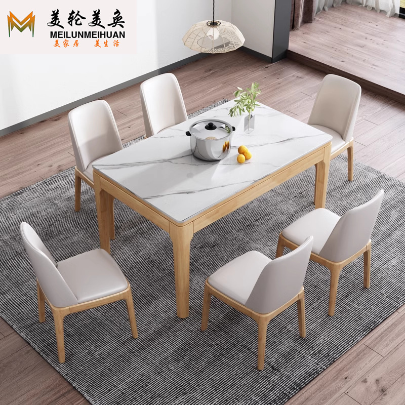 现代简约橡胶木1.5米全实木岩板长餐桌北欧风家用餐桌椅组合8人位