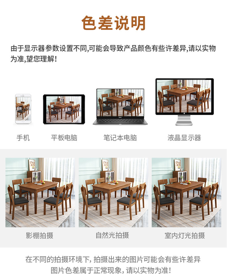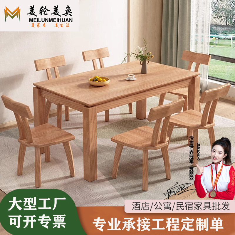 白蜡木全实木餐桌1.6米 现代简约家用六人位长餐桌升级加厚西餐桌