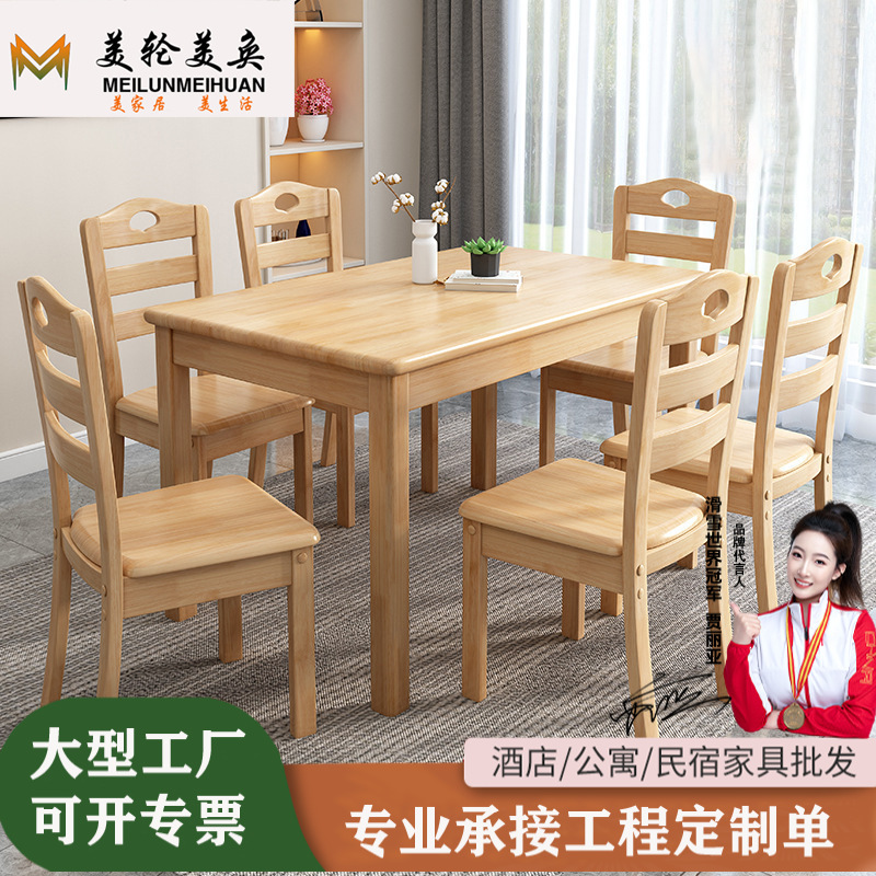 現代のシンプルな木製テーブルと椅子の組み合わせ家庭用リビングルームの小戸型北欧工場レストランの食事テーブルのレンタルハウス